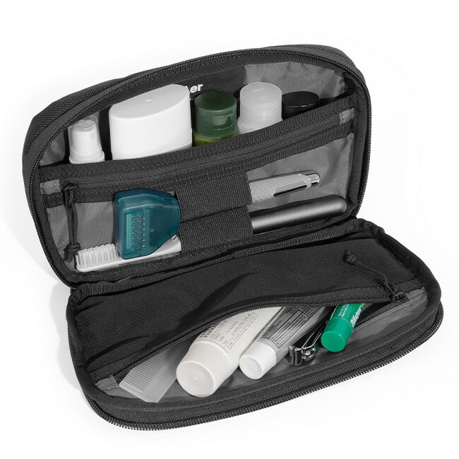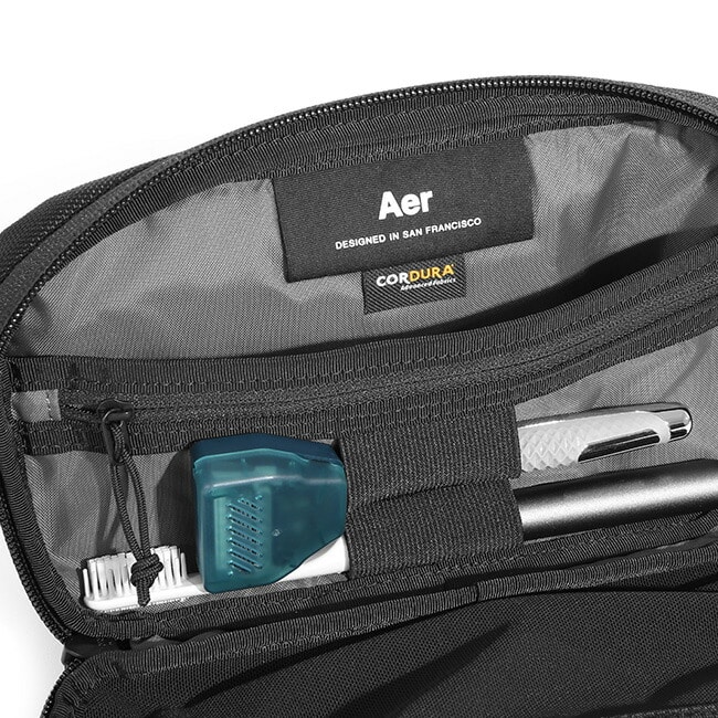 機能面では、歯ブラシやカミソリなどを整理できる専用ループ、アメニティを効率的に収納できる複数のポケットを搭載。