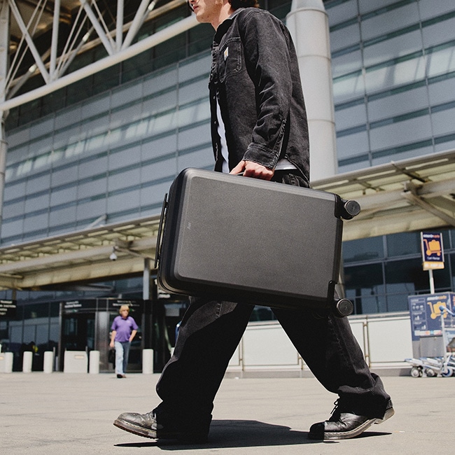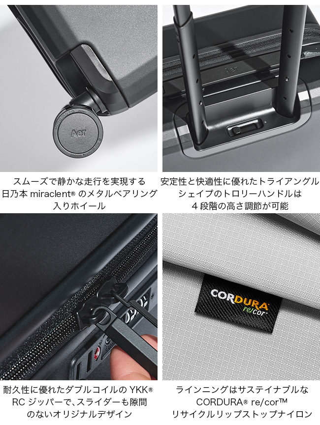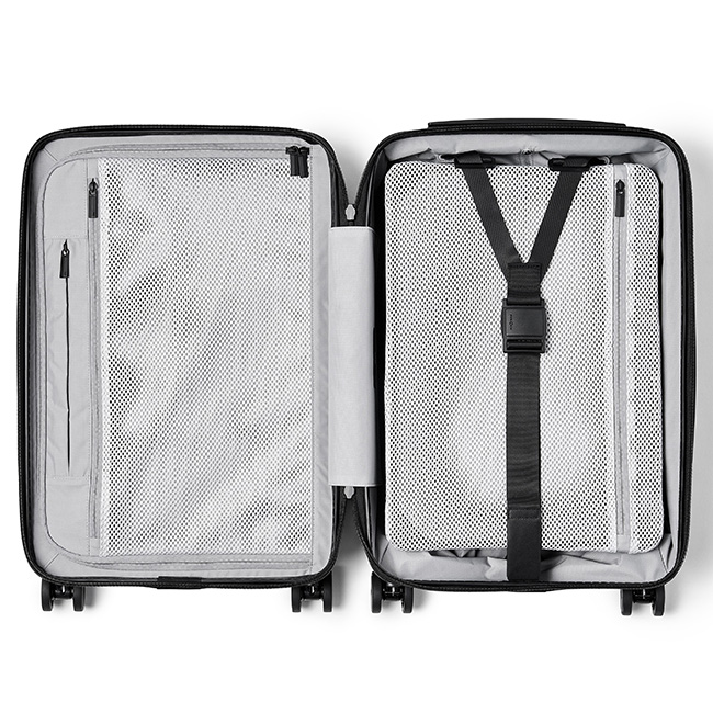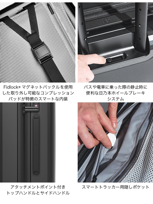 モダンでミニマルなデザイン、優れた耐久性を誇るプレミアム素材とトリミング、そして旅の体験を合理化するために考え抜かれたディテールが特徴です。