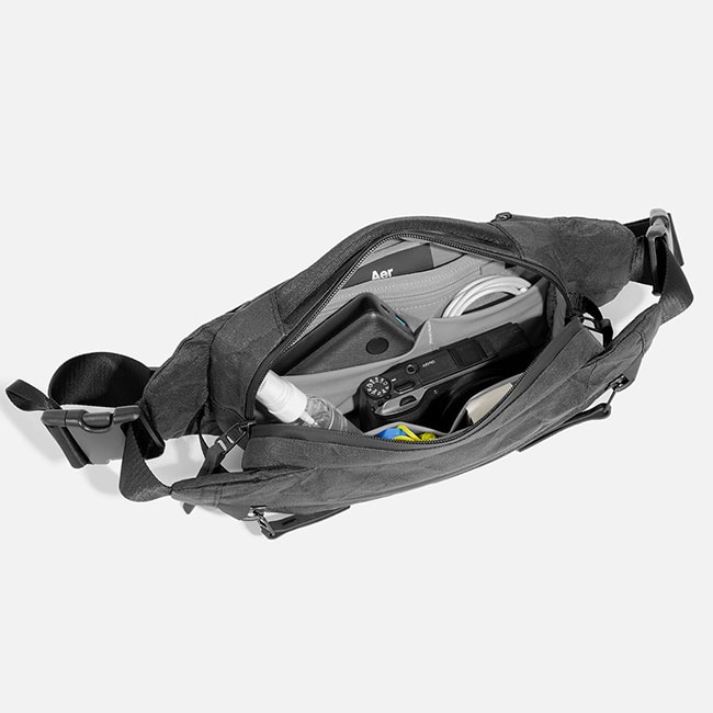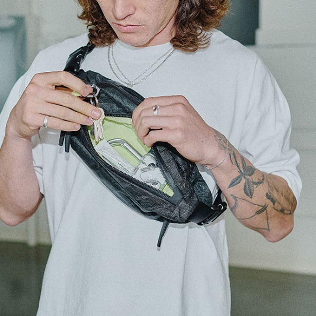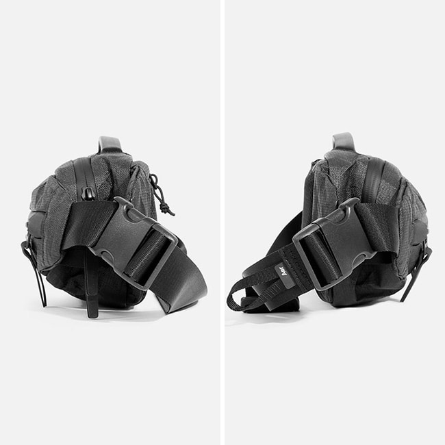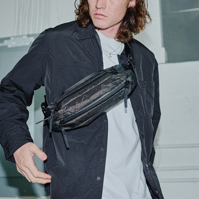 洗練された美しいフォルムと、デイリーユースの必需品を快適に持ち運ぶことの出来る内装が特徴でウエストまたはショルダーバッグとして使用できます。素材はナイロン等に比べ耐摩耗性に圧倒的に優れ、約20%軽量なChallenge Sailcloth社のUltra400Xを使用しています。
