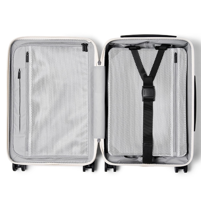 モダンでミニマルなデザイン、優れた耐久性を誇るプレミアムな素材とトリミング、そして旅の体験を合理化するために考え抜かれたディテールが特徴です。