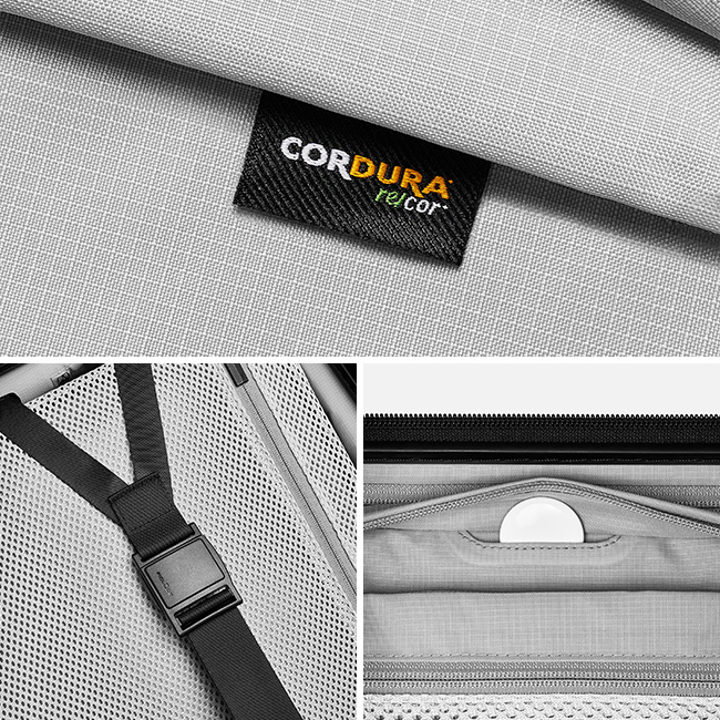 ラインニングはサステイナブルなCORDURA® re/cor™リサイクルリップストップナイロン(bluesign®認証)