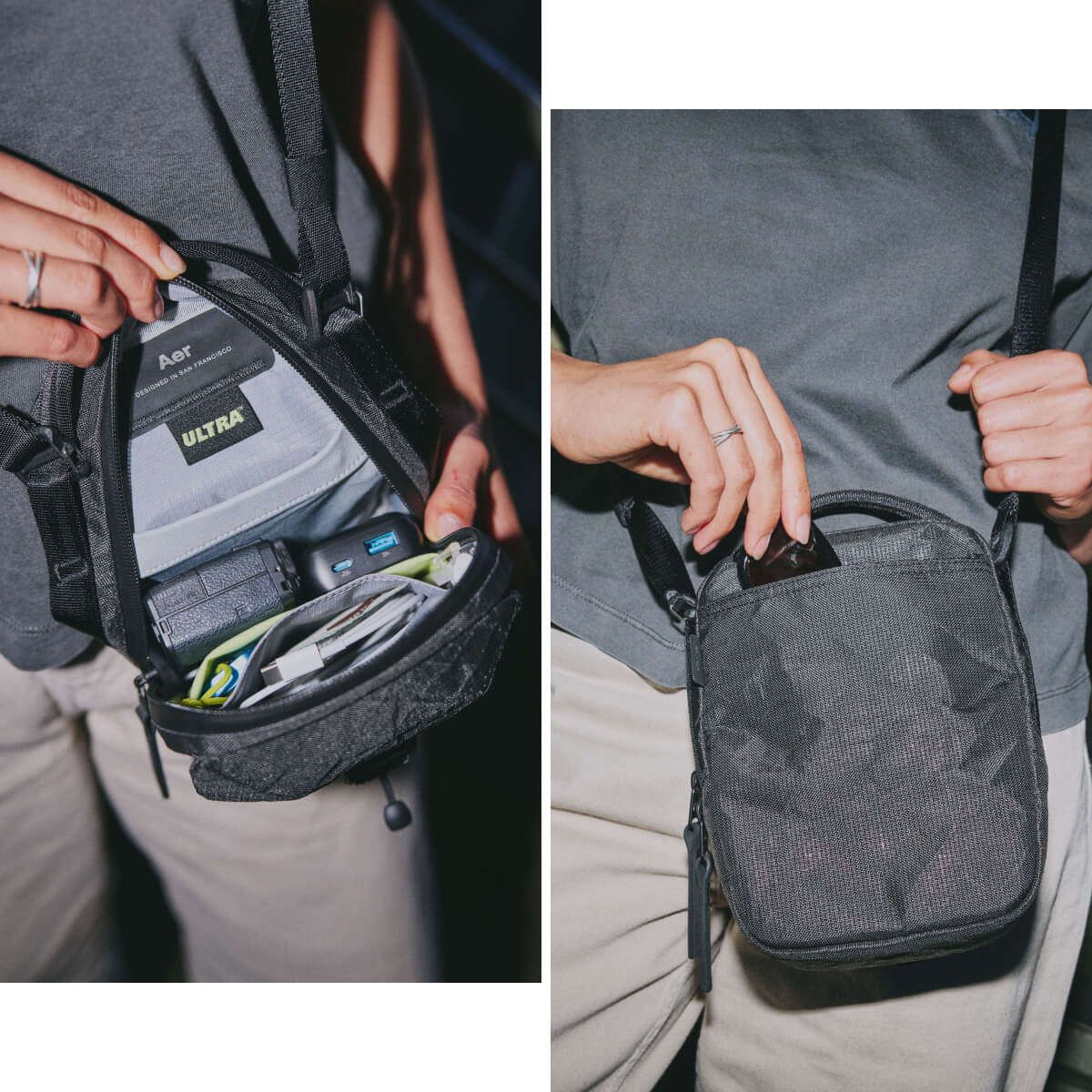 必需品をスタイリッシュかつスマートに持ち運べるスリングバッグ