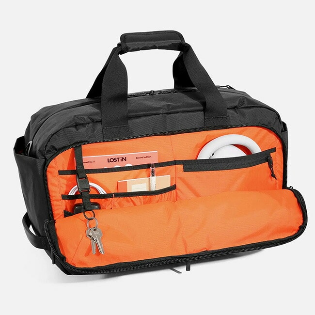 Travel Weekenderは、機内持ち込み旅行に十分な広々とした収納を提供します。アクセスしやすいメインコンパートメントと、移動中に整理整頓できる複数の内部ポケットが特徴です。