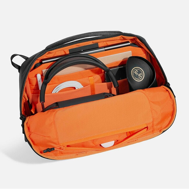 大きく開くメインコンパートメントは荷物の出し入れがしやすく、フラット構造で整理整頓もスムーズ。