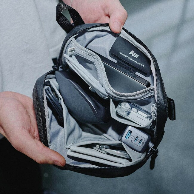 メインコンパートメントは大きく開くワイドアクセス設計で、中身が見やすくスムーズなパッキングが可能。