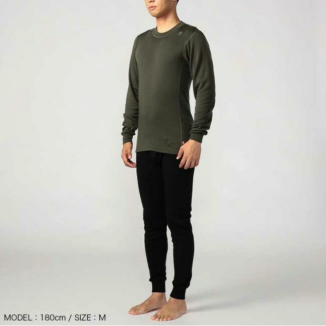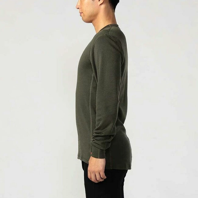 19.5マイクロンの100%メリノウール繊維を使用し、200g/m²ウェイトのニット構造をしています。0℃前後の環境でも最高のヒートバランスで快適な環境を生み出します。