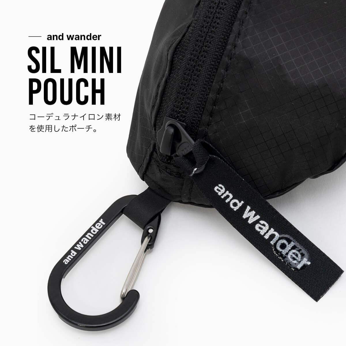 コーデュラナイロン素材を使用した、小物の収納に便利なミニポーチ