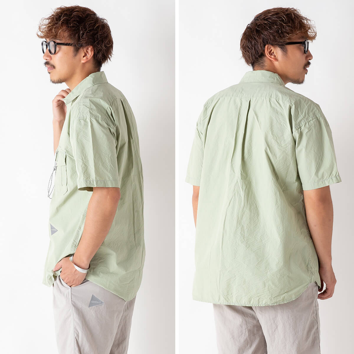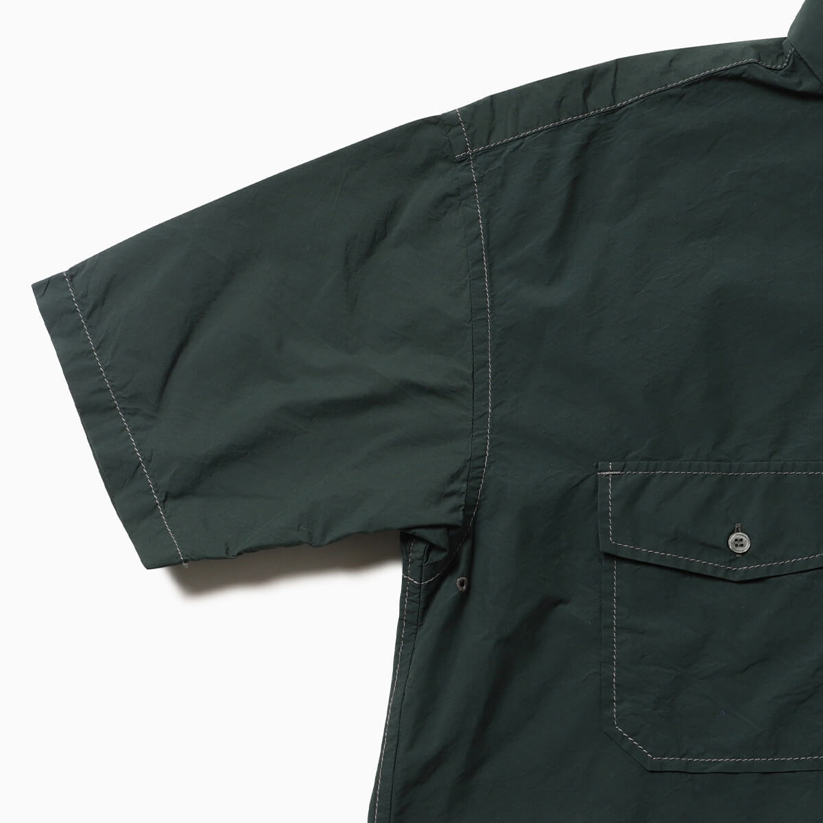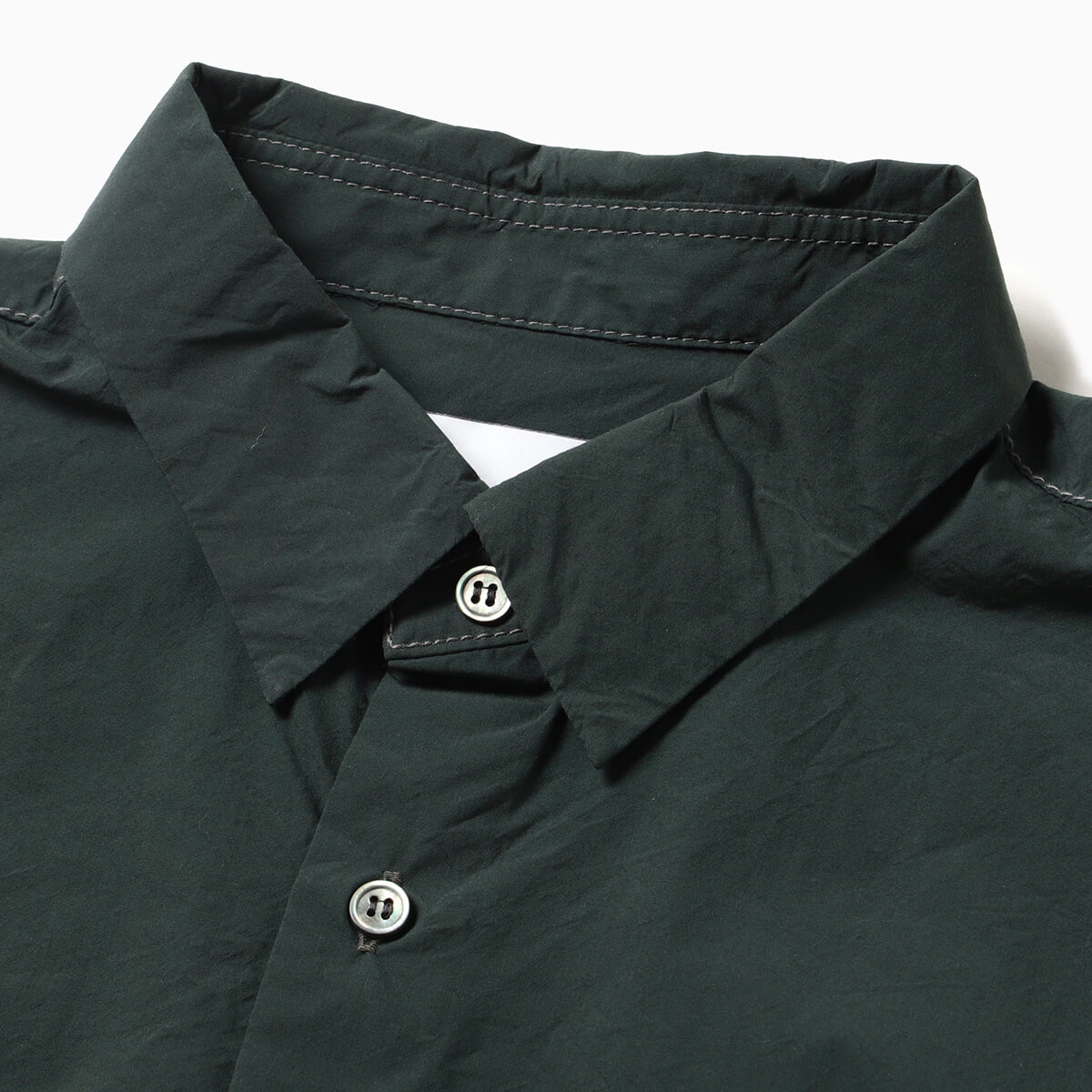 経糸にコットン、緯糸にナイロン糸を使用した、タイプライター生地の半袖シャツ