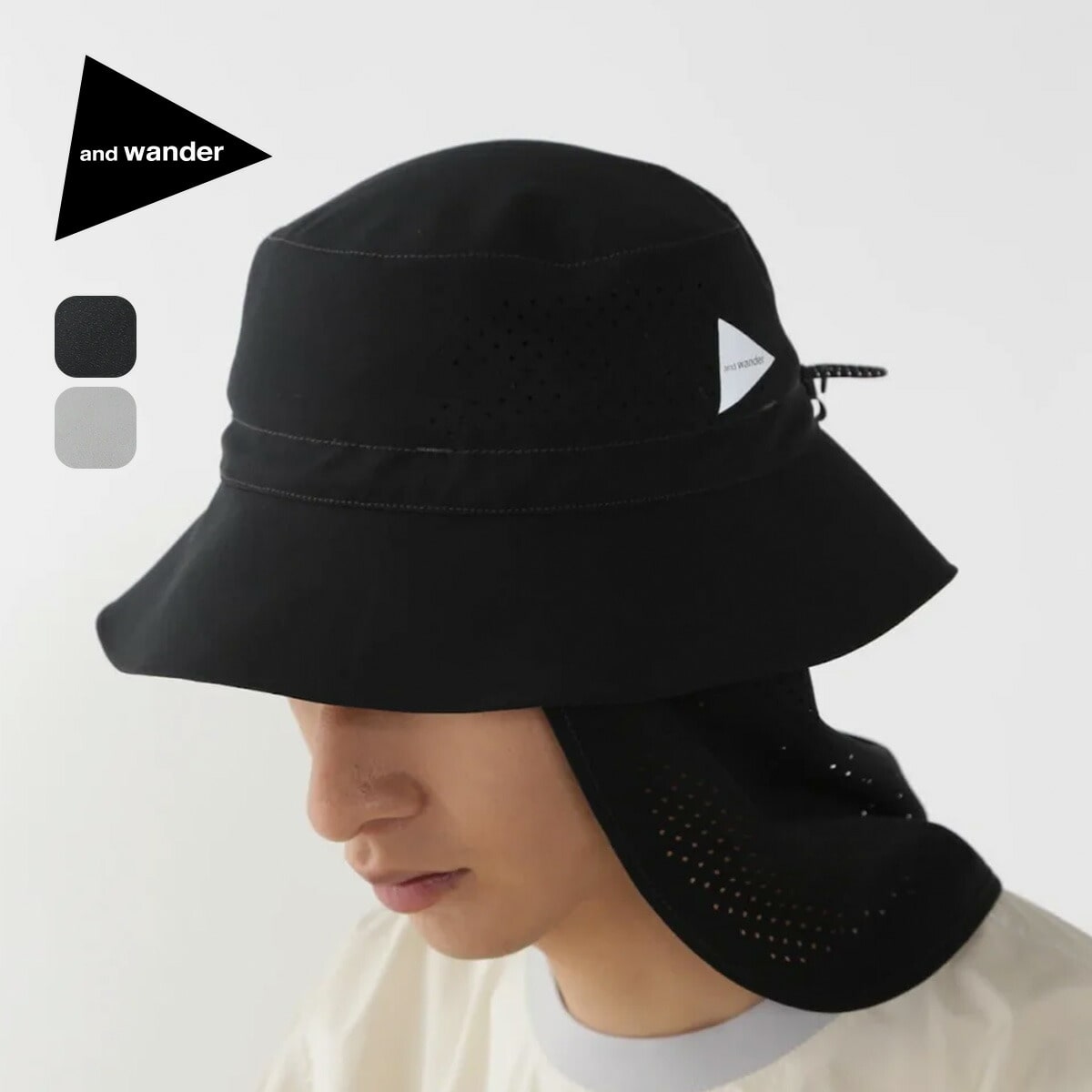 着脱可能なネックカバー付きの、3シーズン対応アウトドア用ハット