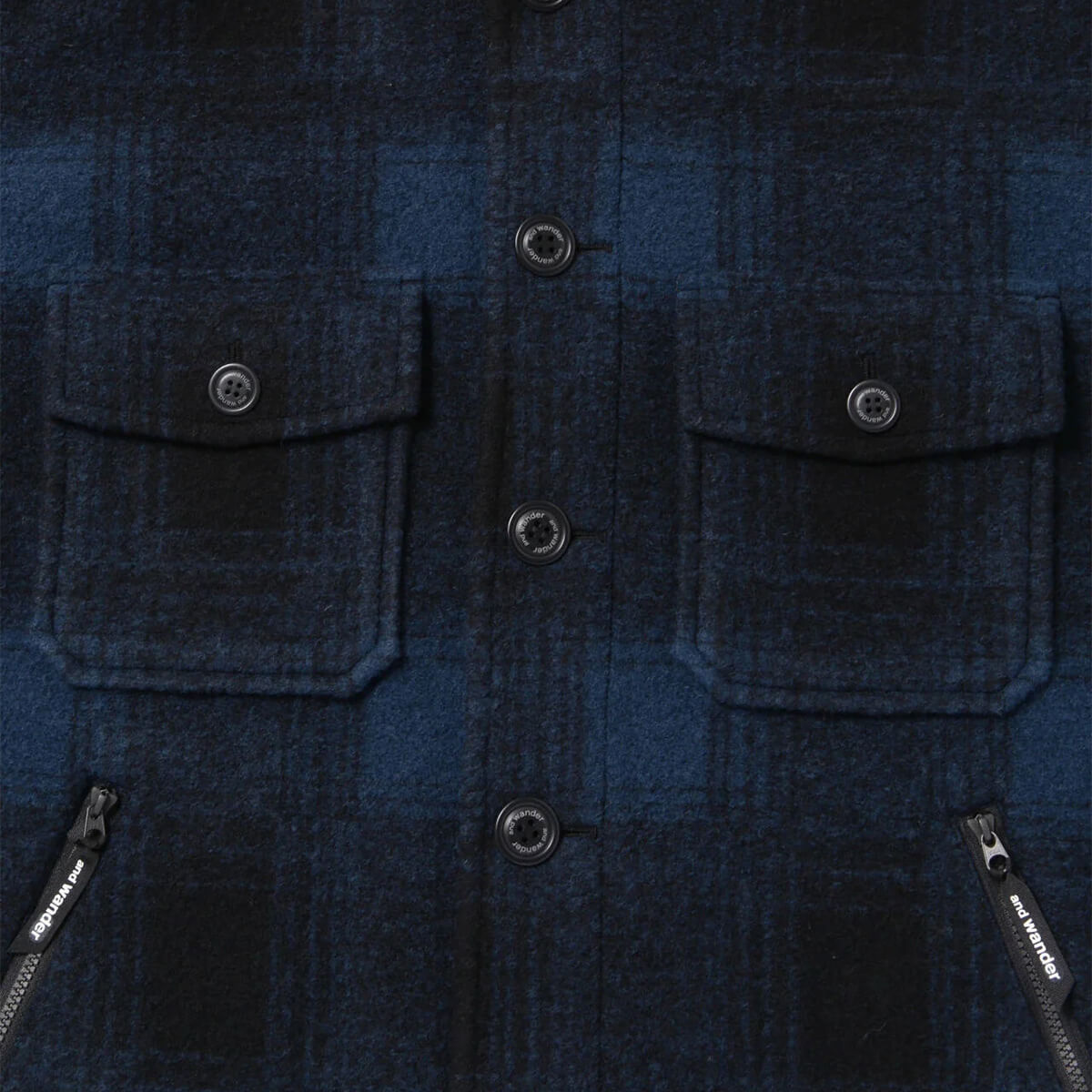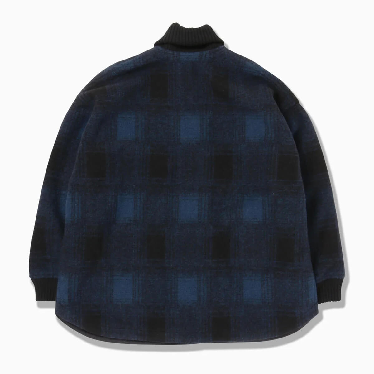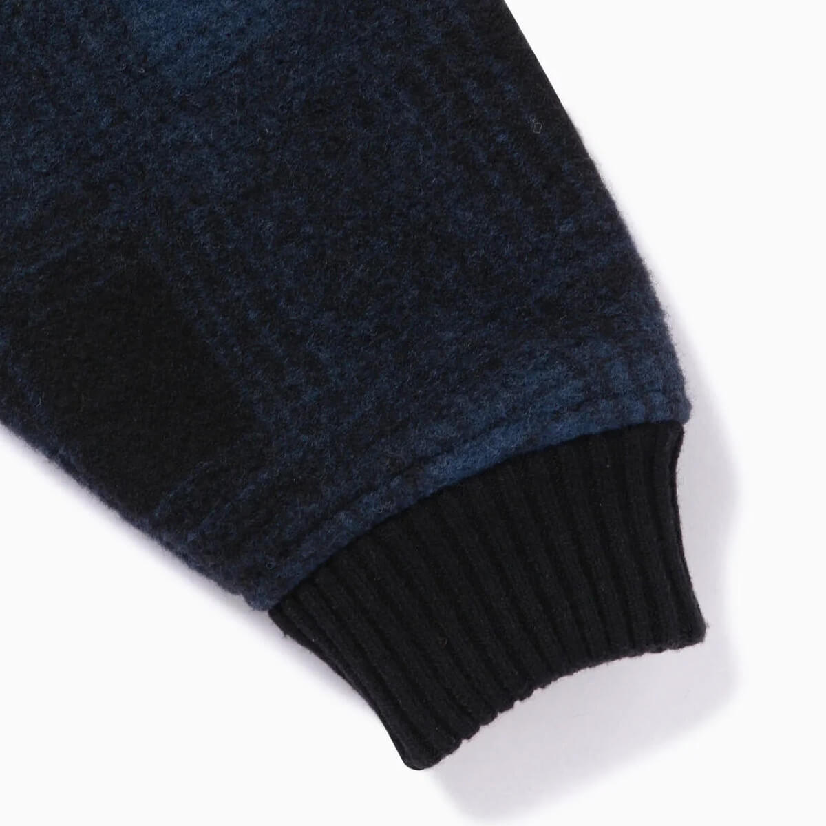 ウールポリエステルの混紡糸をオリジナルのチェック柄に編み、縮絨と起毛加工でふっくら仕上げています。裏にはフィルムをラミネート加工しているため、高い防風性を発揮し、冷たい風をブロックします。