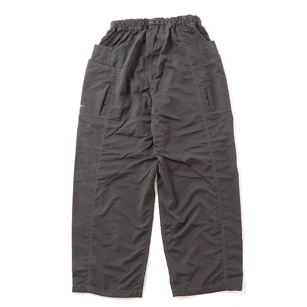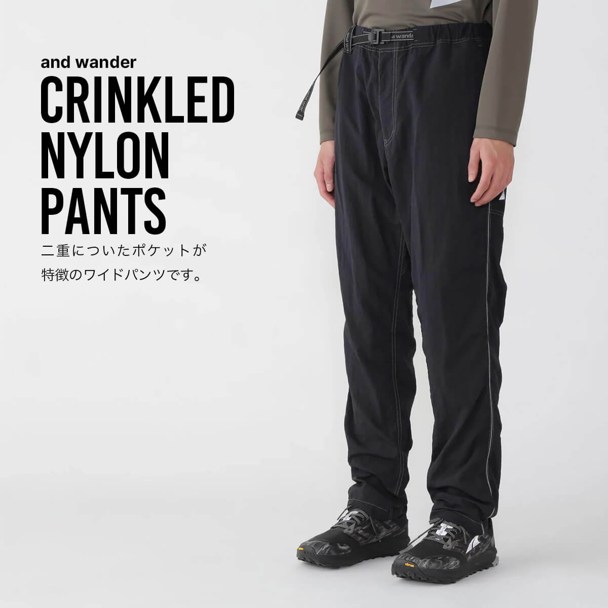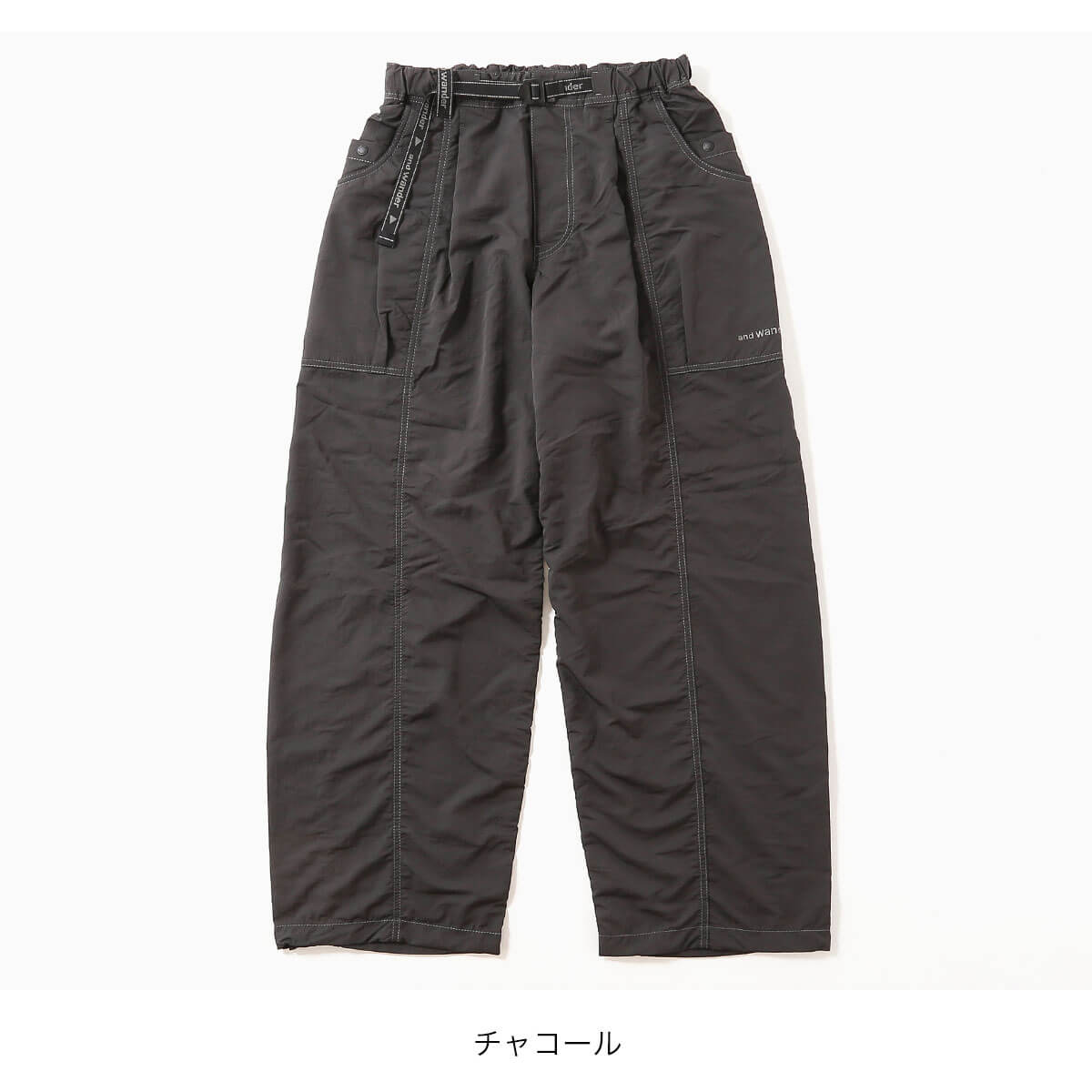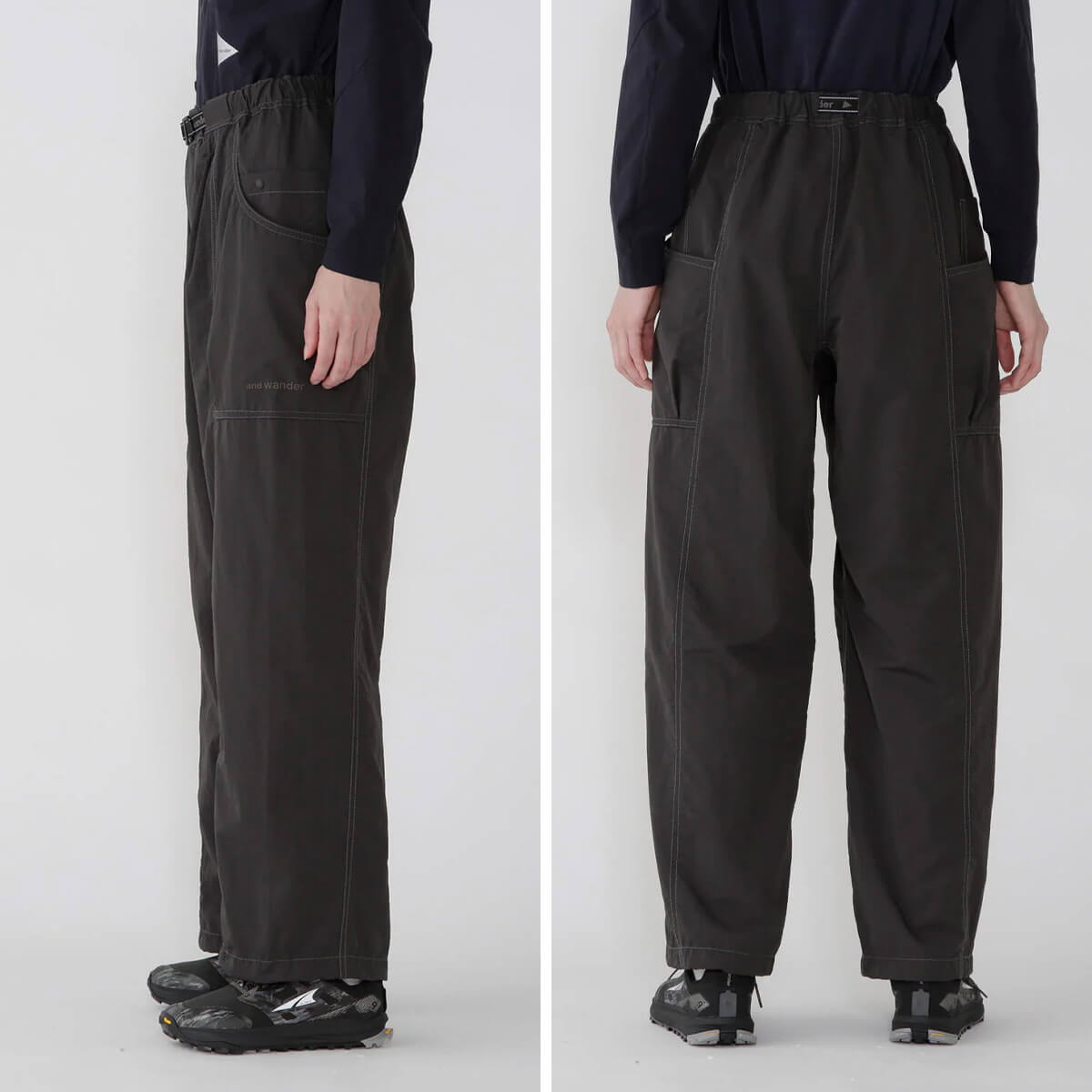 二重についたポケットが特徴のワイドパンツです。二重織生地は軽量で撥水性があります。