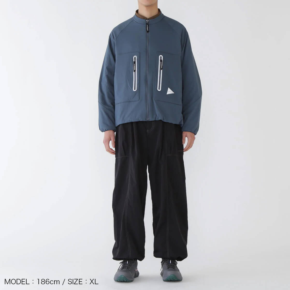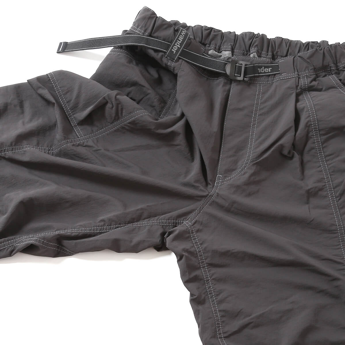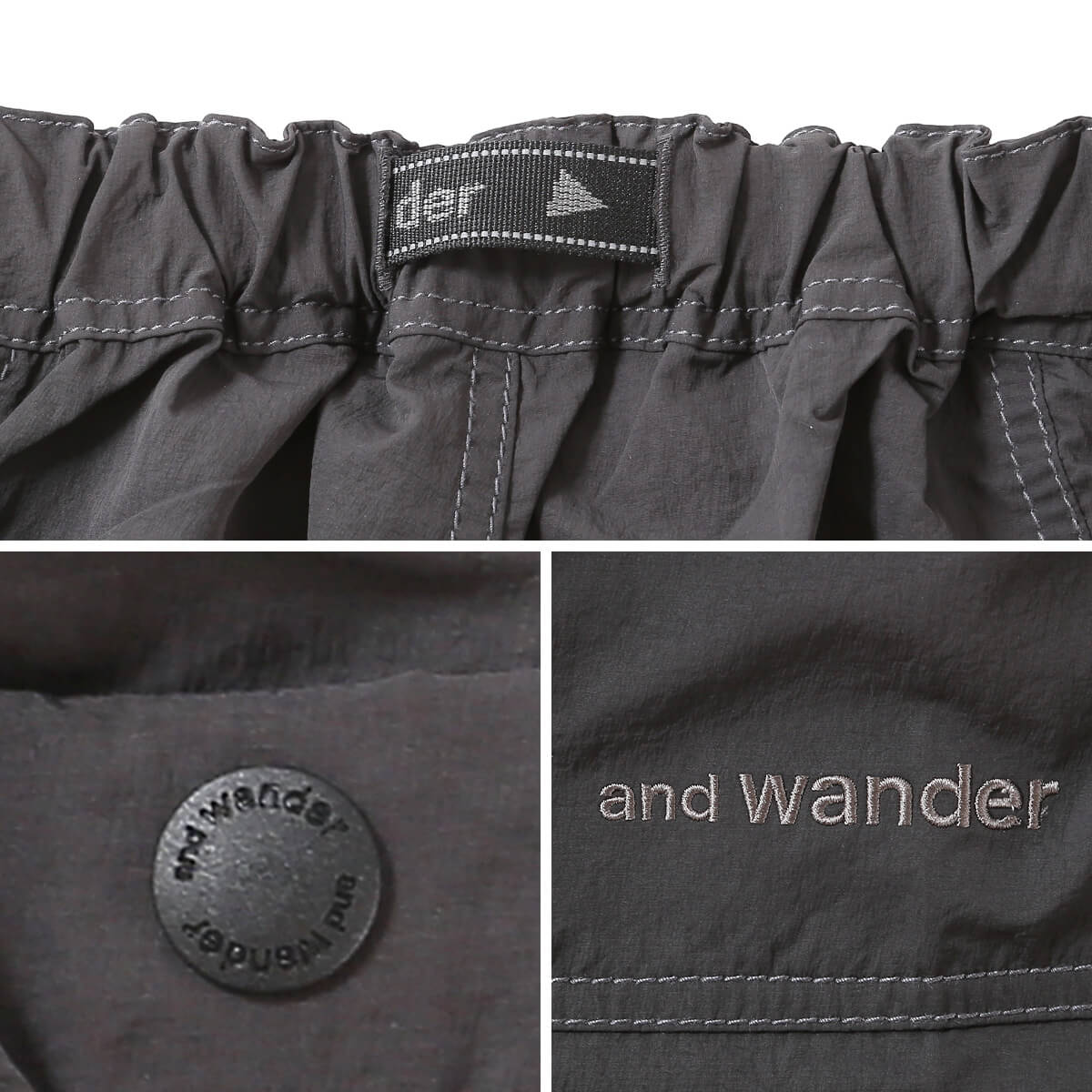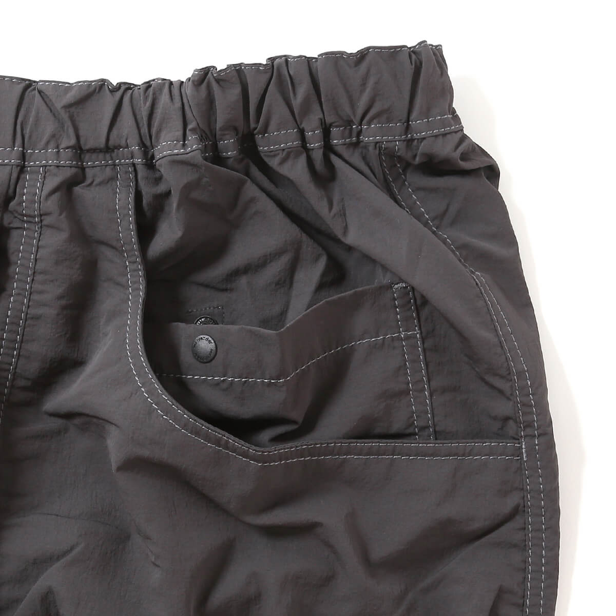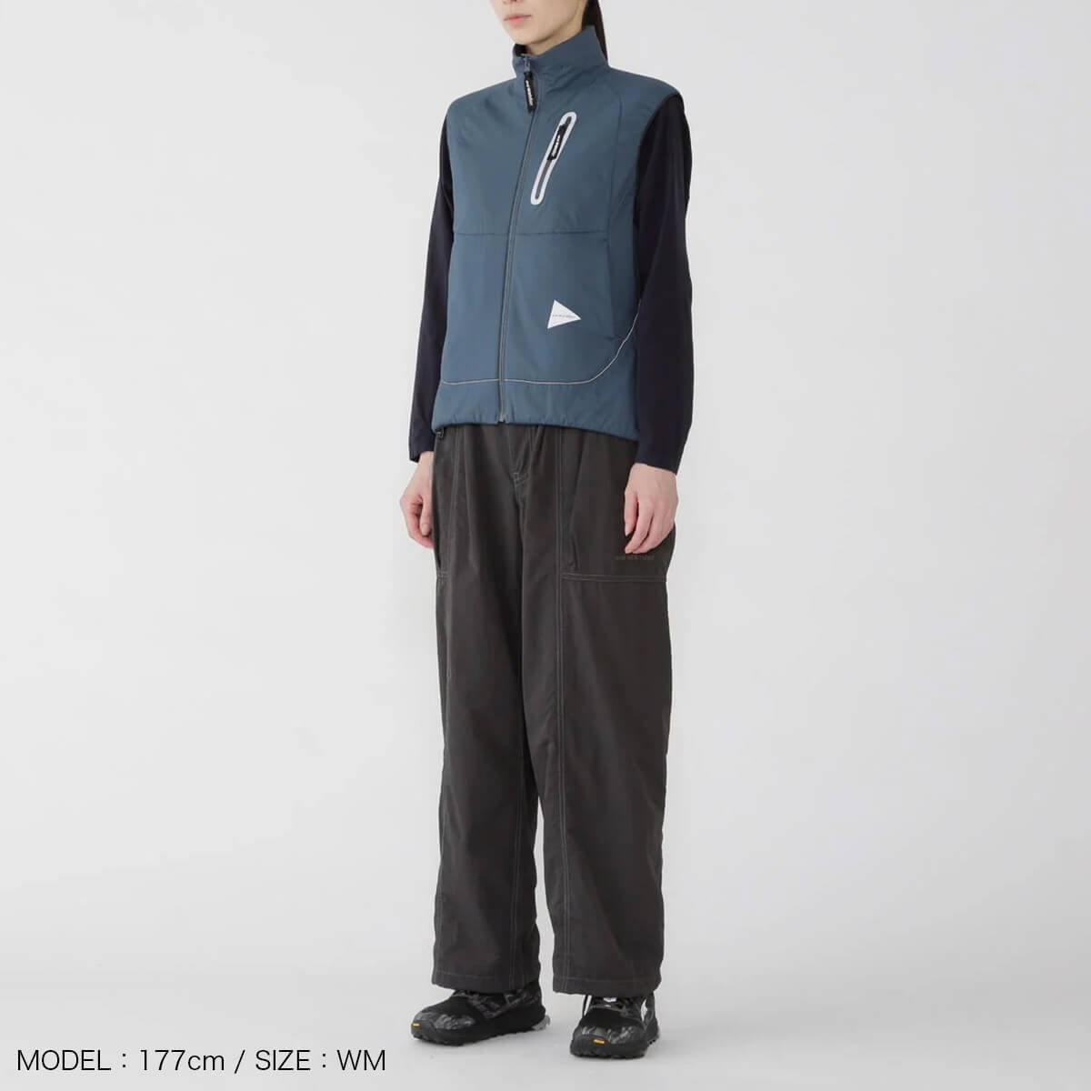 二重についたポケットが特徴のワイドパンツです。二重織生地は軽量で撥水性があります。