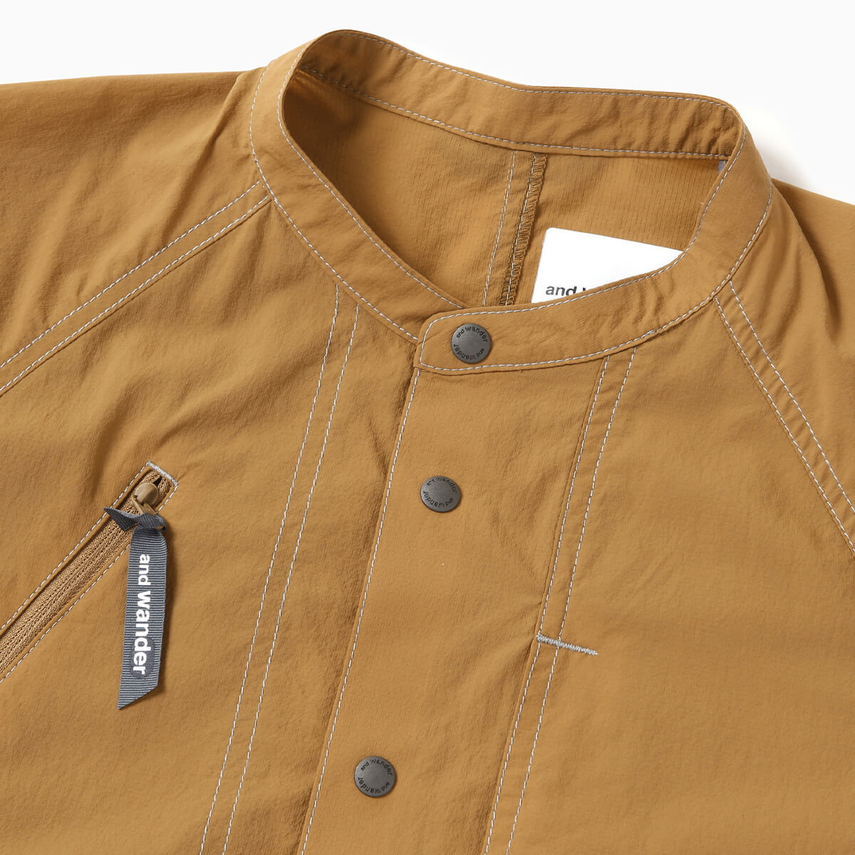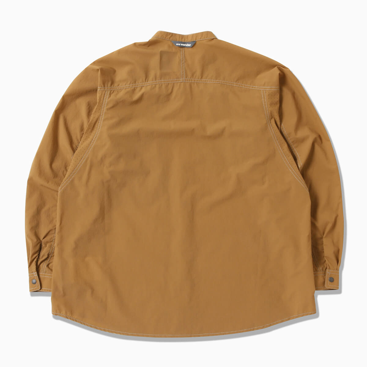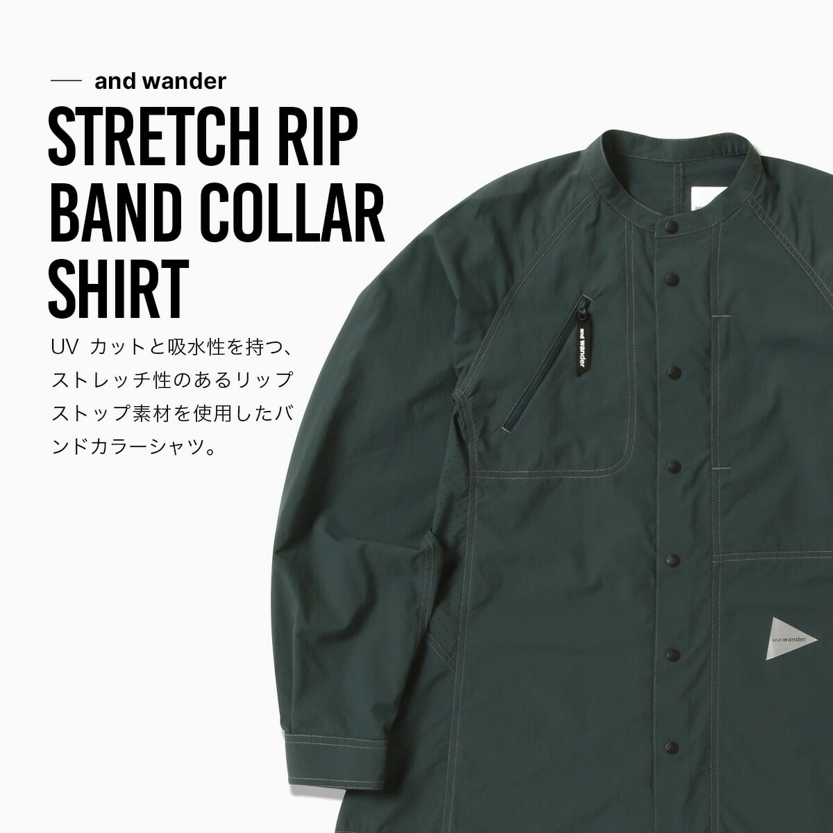 UVカットと吸水性を持つ、ストレッチ性のあるリップストップ素材を使用したバンドカラーシャツ