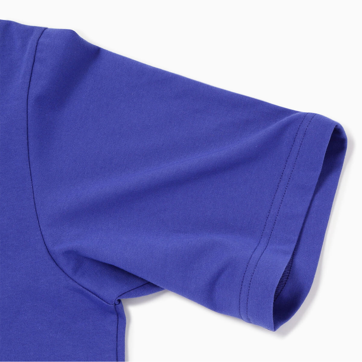 綿コーマ糸とリサイクルポリエステル糸を使用したプレーティング天竺のTシャツです。裏側をポリエステルにすることで速乾性を持たせ肌のべたつきを抑えつつ、表側は綿にすることで自然な風合いを持たせてます。
