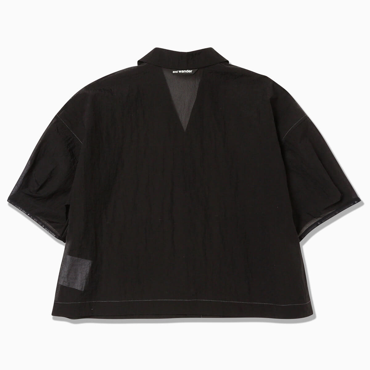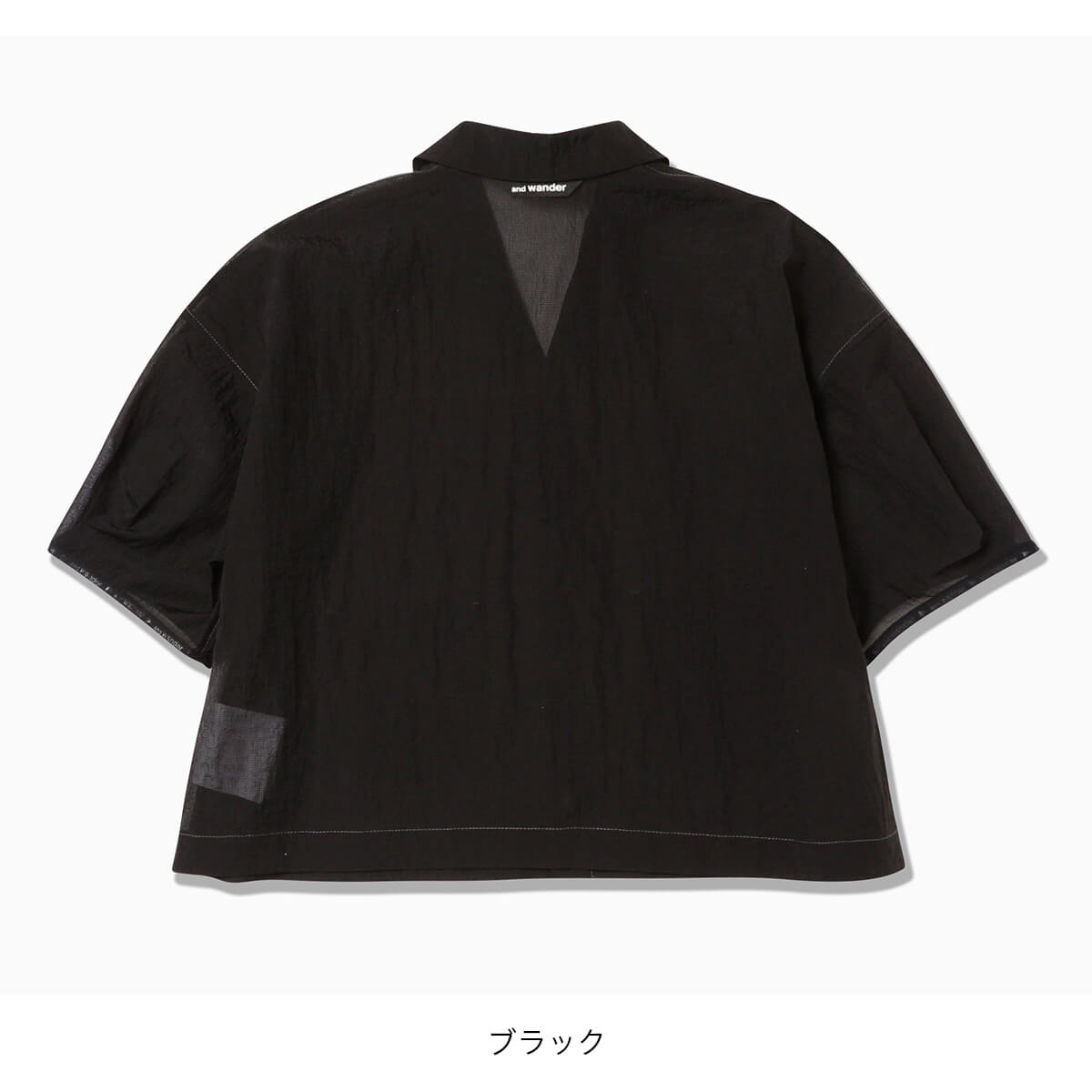 透けのあるリップストップ素材を使用したショート丈のシャツです。立体的な袖が特徴です。