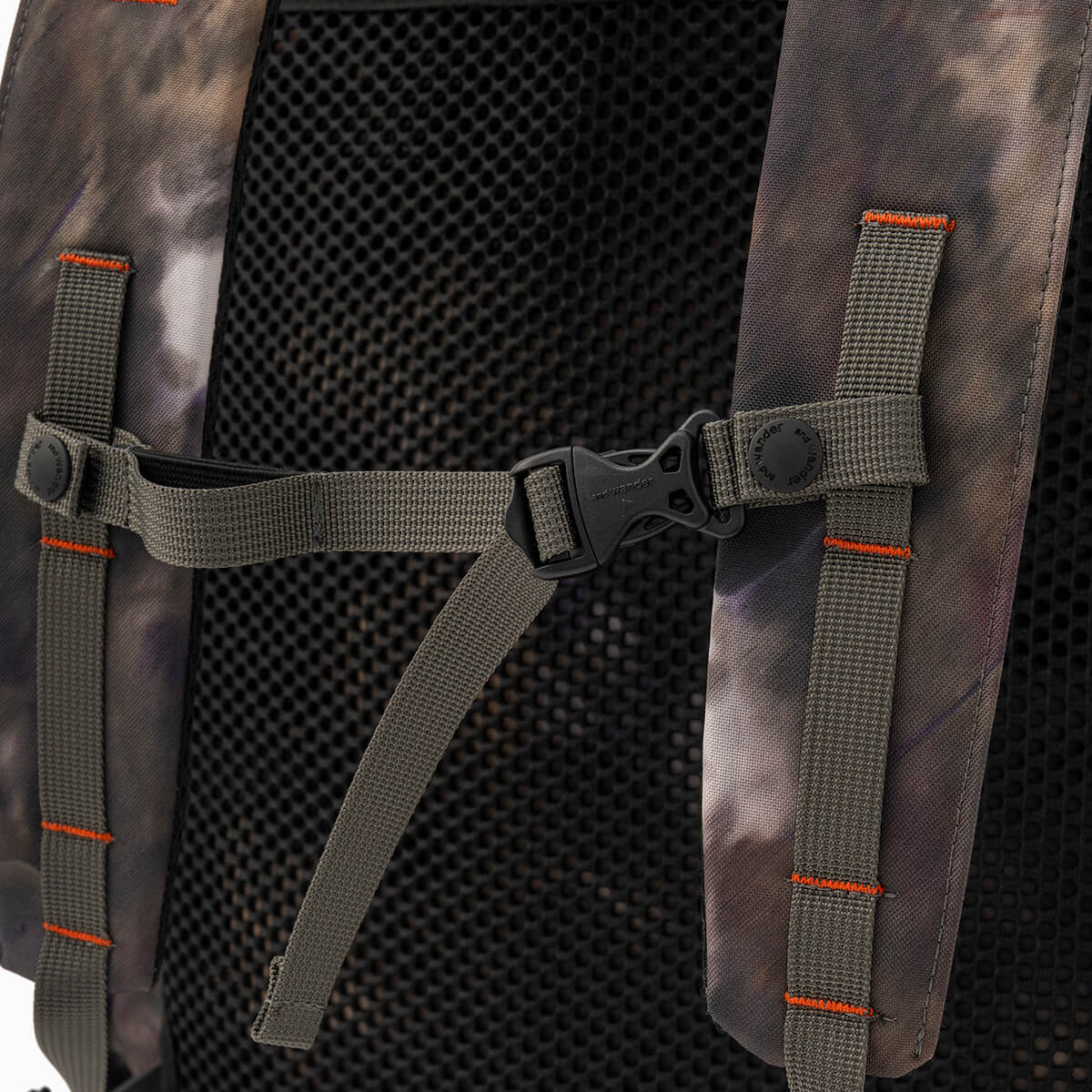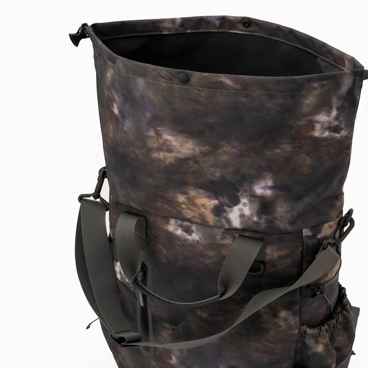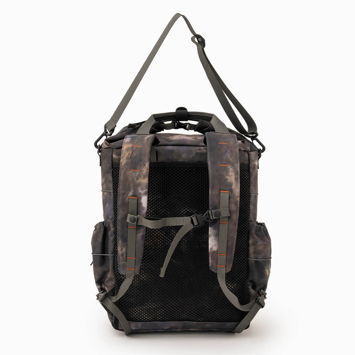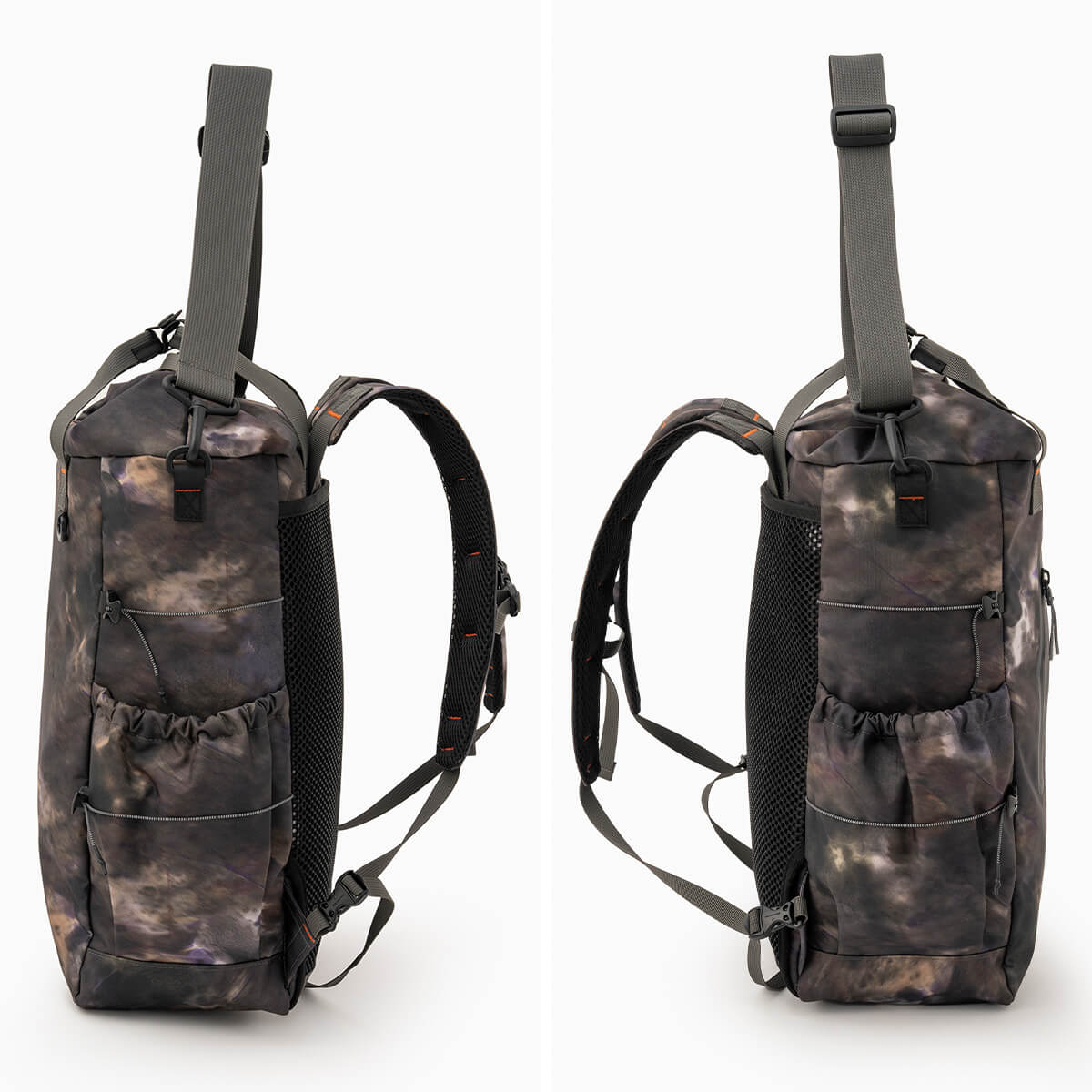 背面ポケットに収納可能なショルダーストラップを使用するとリュックとして背負うこともできます。