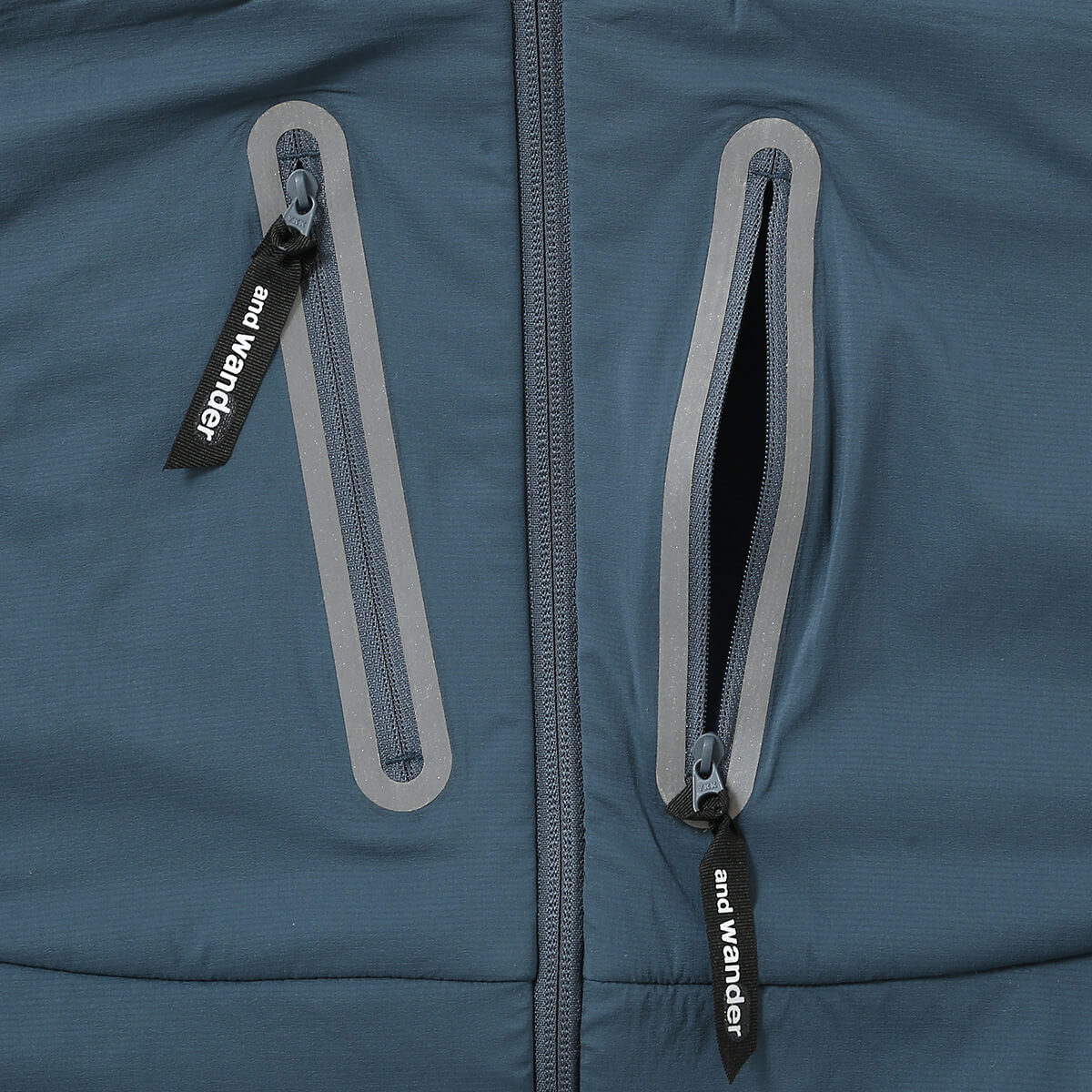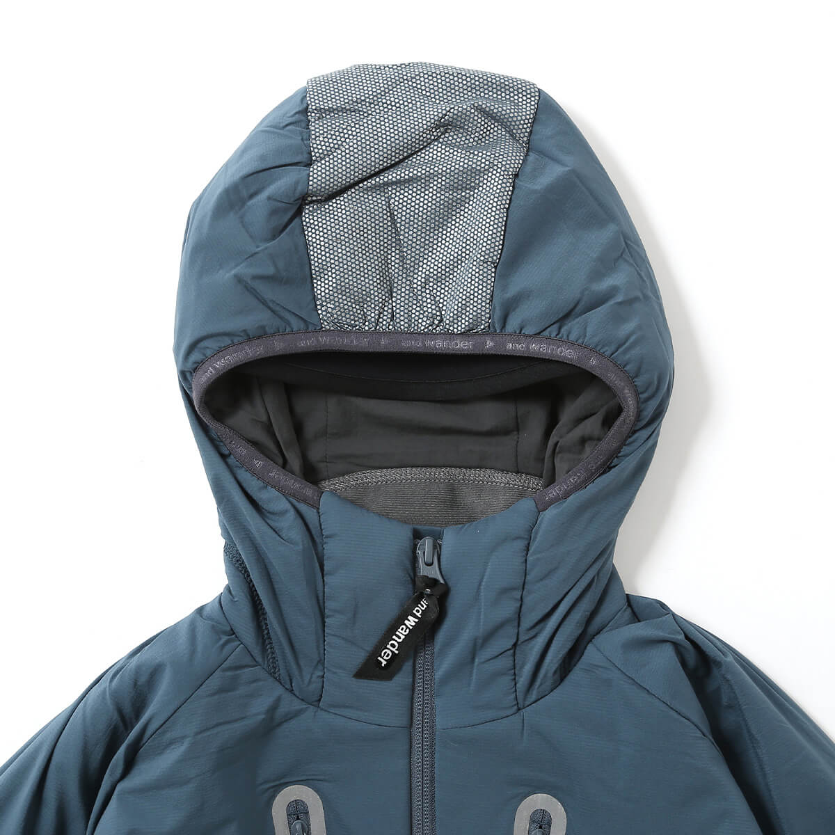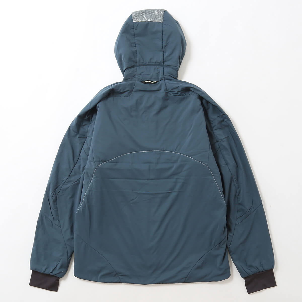 保温性と速乾性速乾性を兼ね備えた、着用したまま体温調節が可能なフーディジャケット。