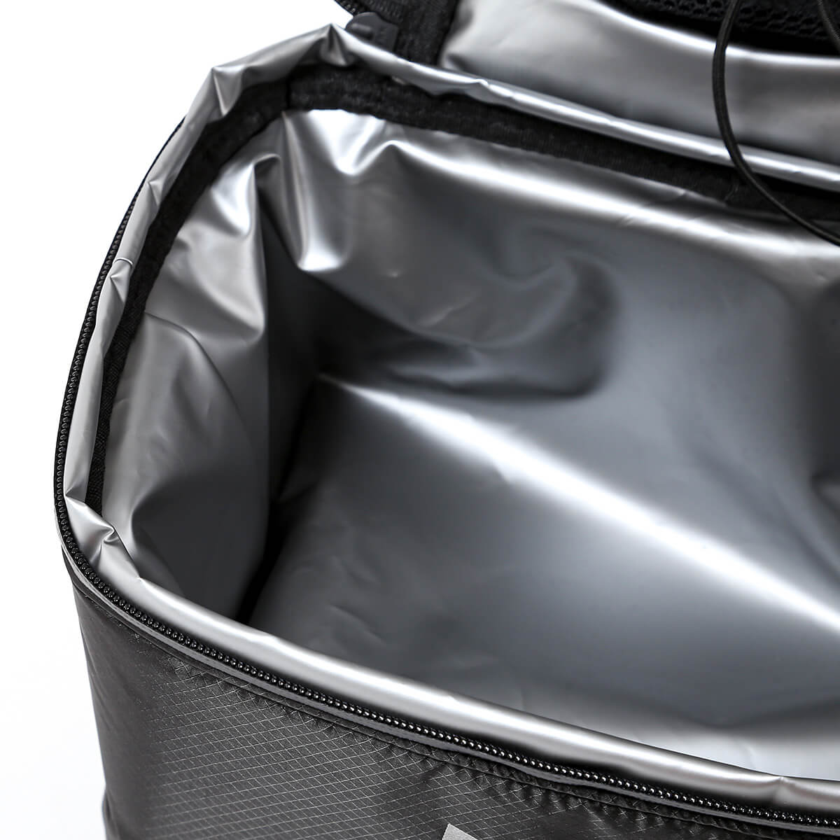 裏地はウェルダー圧着仕様なので機密性を高めながら、水分などの漏れ出しを防ぎます。