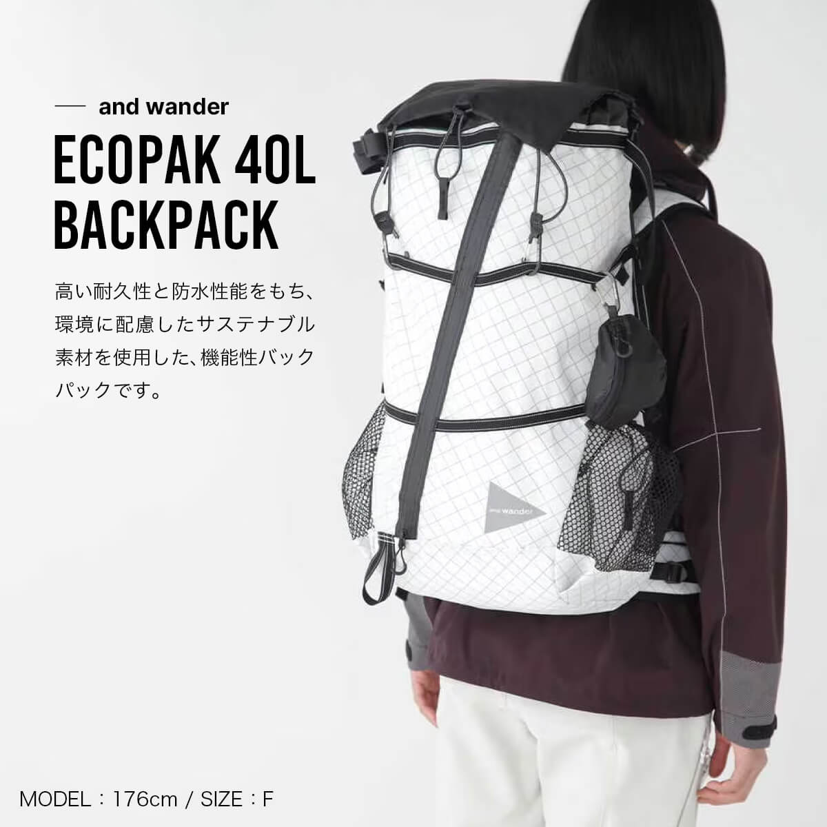 高い耐久性と防水性能をもち、環境に配慮したサステナブル素材を使用した、40L機能性バックパック。