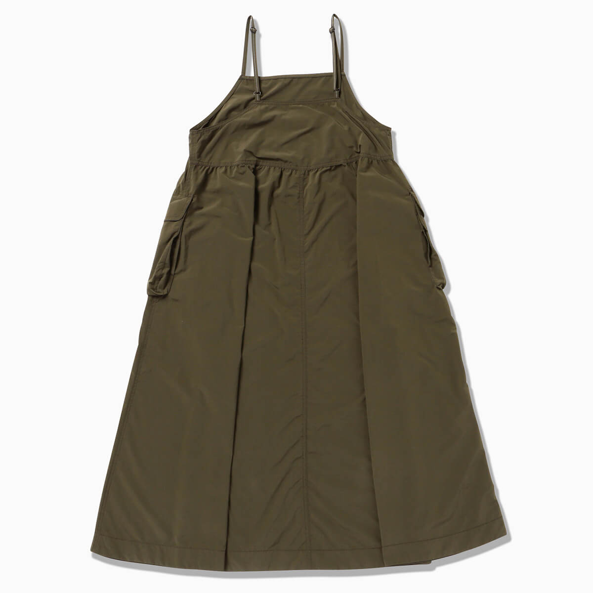 カーゴポケットがアクセントの、ワイドシルエットなキャミソールワンピース。