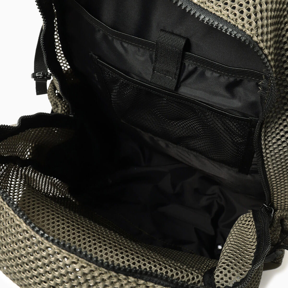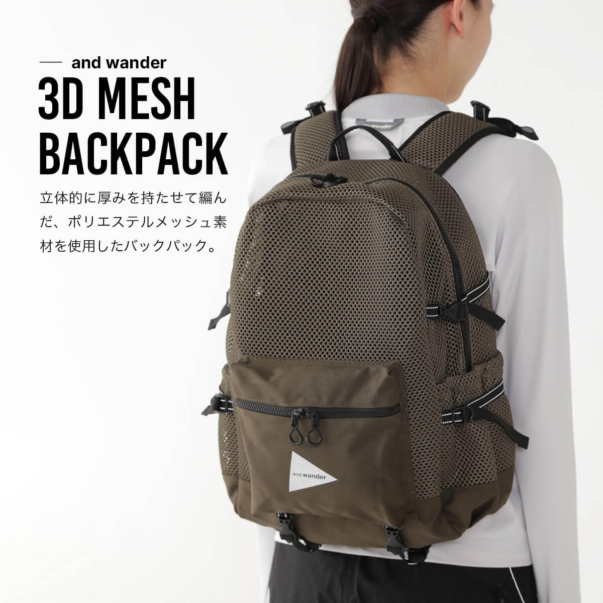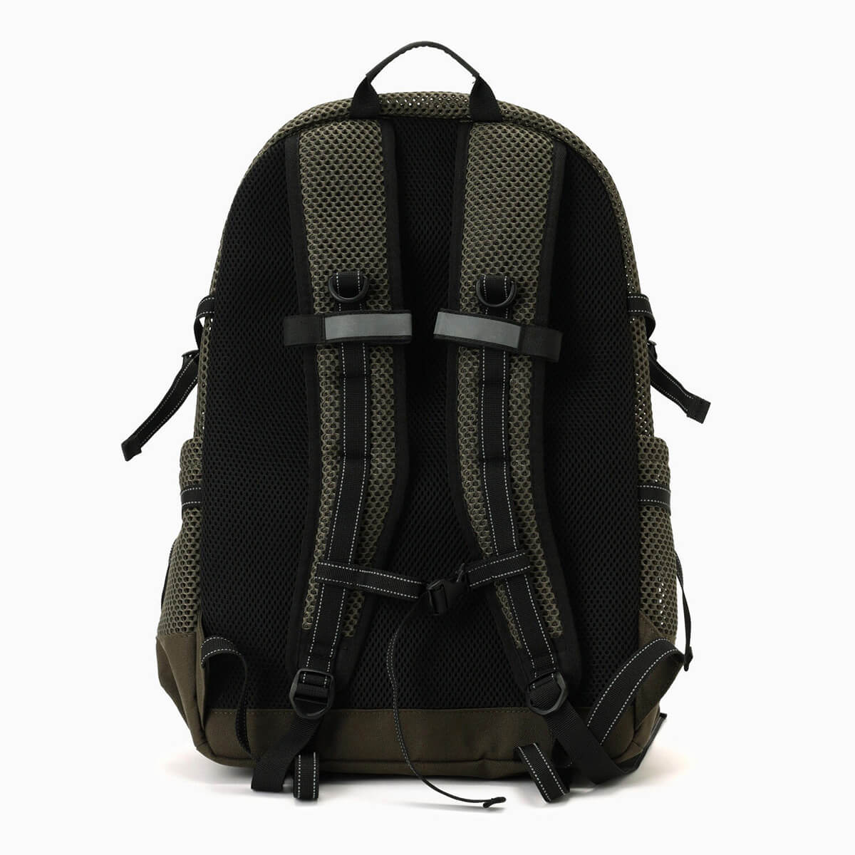 生地を重ねて立体的に厚みを持たせて編まれた、ポリエステル3Dメッシュ素材を使用したバックパック。クッション性のある素材で、衝撃を吸収して荷物を守ります。