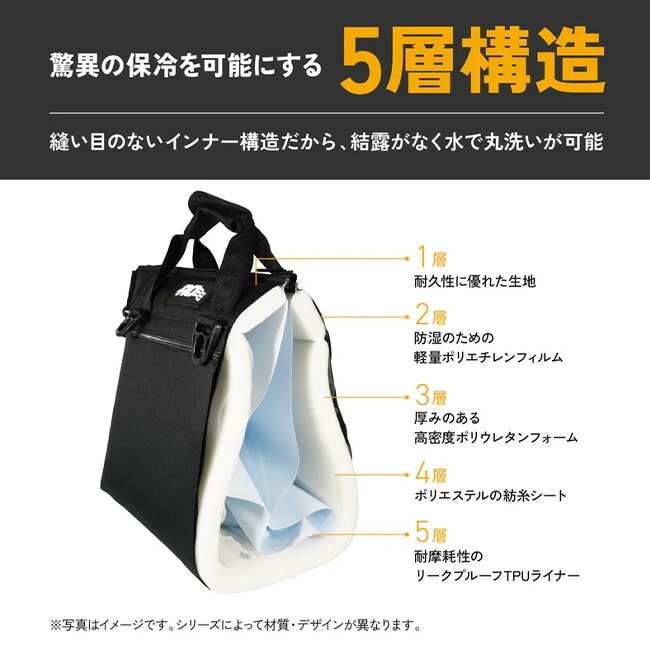 素材の組み合わせにより、サイズによって氷なら外気温49℃の中で約24時間維持出来るほど、驚異の保冷力を発揮。