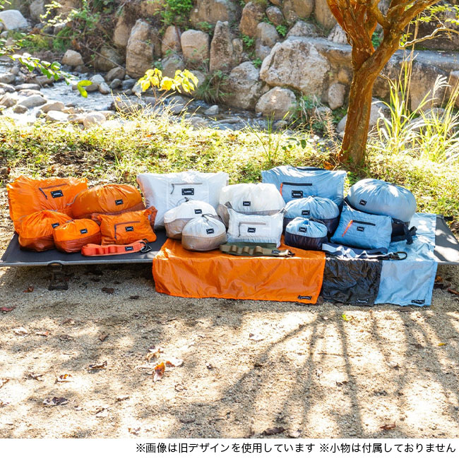 バッグの底にフィットする角底型。L(10L)サイズは寝袋、シェルジャケット、2泊以上の衣服など用途に応じてまとめて収納したい道具をしまうのに使いやすいサイズです。