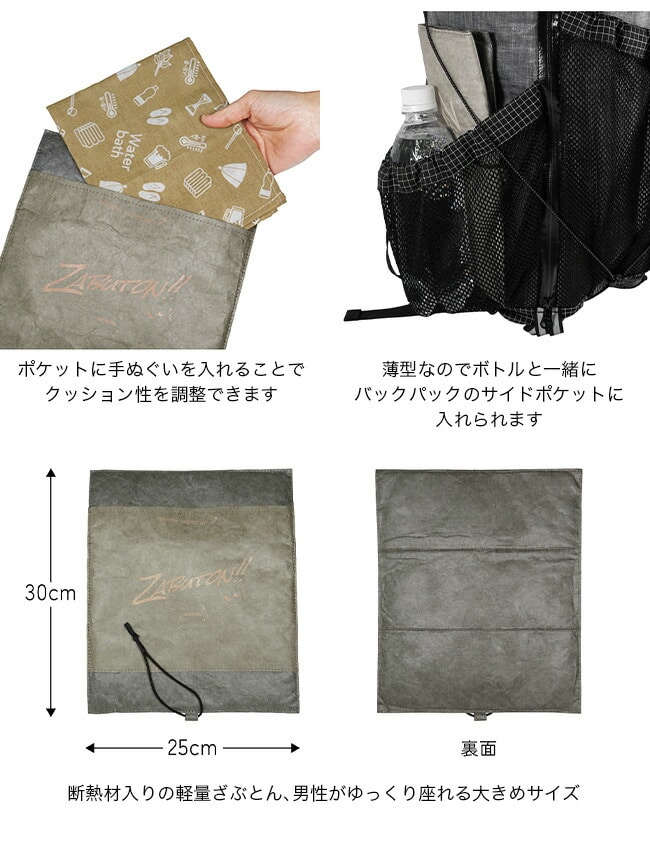ポケットに手ぬぐいを入れることでクッション性と断熱性を高められる。