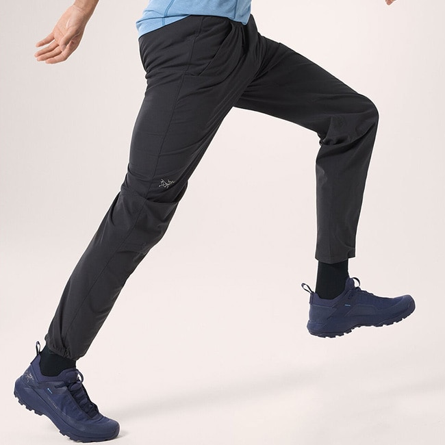 ゴムウエストはしっかりとフィットするように調節でき、調節可能な裾は絞ってトレイルの小石の侵入を防止。