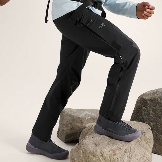 ウェットなコンディションでのハイキングやクライミングに適した、軽量でレイヤリング可能なシェルパンツ