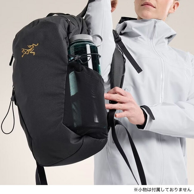 外部収納には、ウォーターボトル、ウィンドシェル、カメラなどを入れるのに最適なサイドポケットと、蓋にもポケットが付いています。