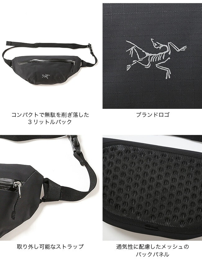 通気性に配慮したAeroFormモノフィラメントメッシュのバックパネルと、調節・取り外し可能なストラップにより、ショルダー・クロスボディ・ウエストの3スタイルで快適に使えます。