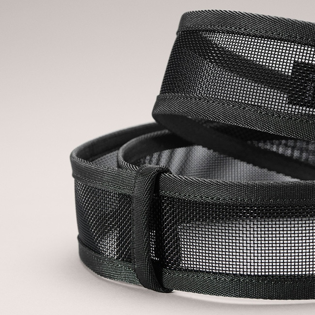 38mmのヘリアドは、コンシール クライミング ハーネスと同じ構造のメッシュ素材を使用した、使い勝手の良いベルトです。つまり、強度や通気性に優れ、フィールドはもちろん街中でも快適に使用できます。