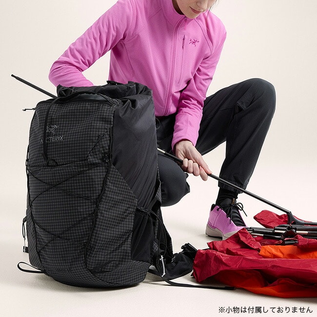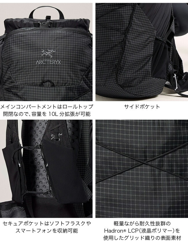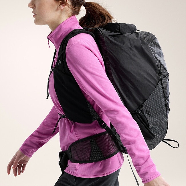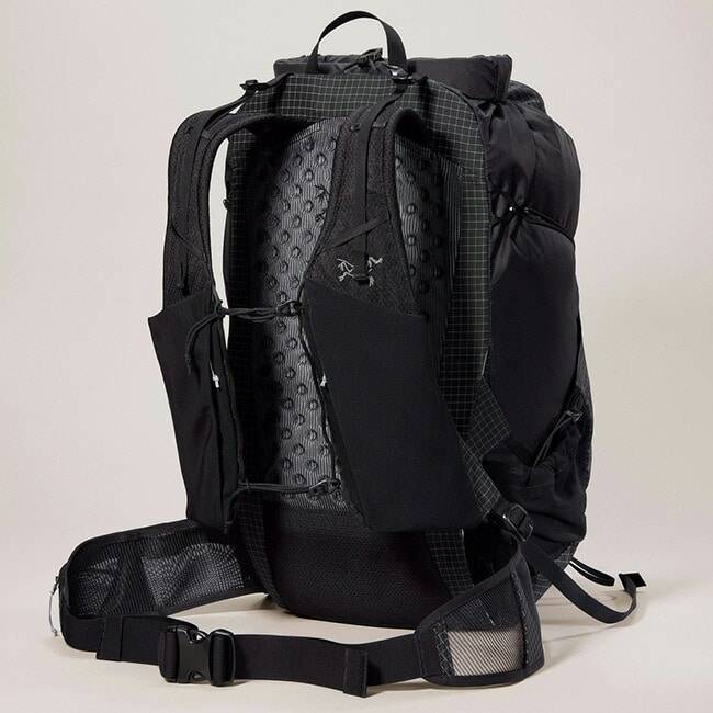 特許出願中の交換可能なハーネスシステムにより、3つのサイズオプションのあるヒップベルトとショルダーストラップで自分に合ったフィット感に調節し、重さをヒップと肩に均等に分散できます。さらに、小雨を弾き、トレイルでの衝撃や擦れ、破れに強い、超軽量で極めて頑丈なグリッドパック素材を使用。