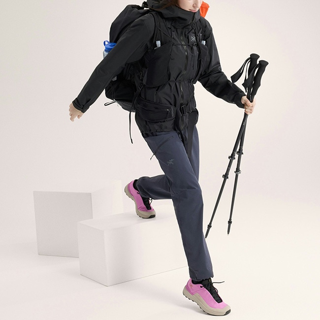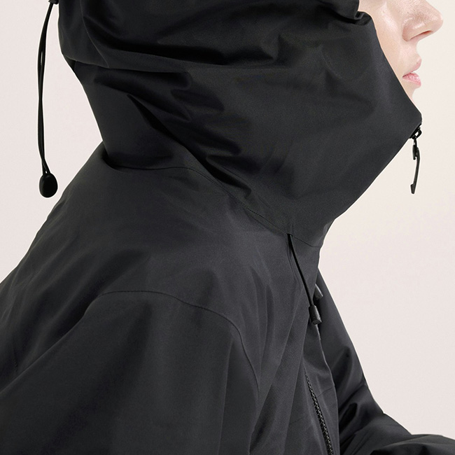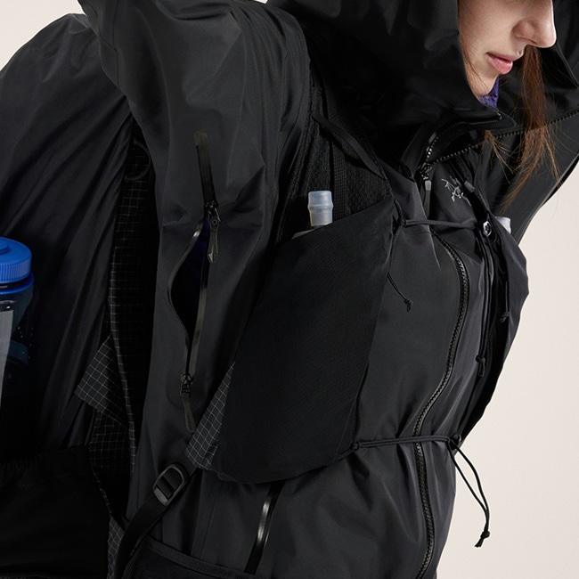 軽量設計とアルパインミッションに適した機能を兼ね備えています。GORE-TEX生地は、ePe膜とFC0 DWR加工を組み合わせ、PFCフリーのラミネートを実現し、炭素排出量を削減しています。