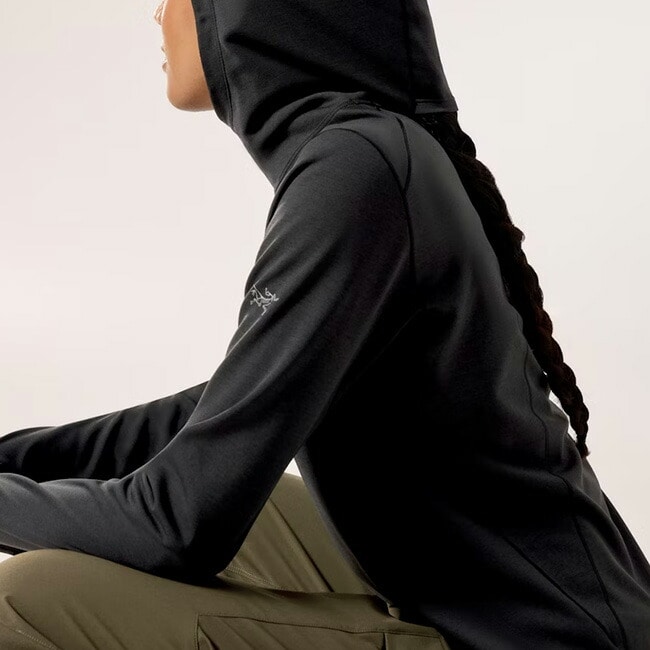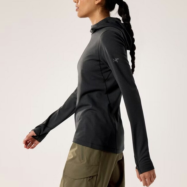 涼しい気候での高負荷アクティビティに適したファーストレイヤー フーディ。