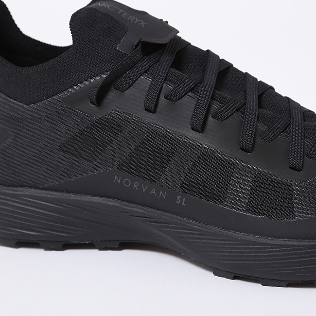 リサイクルポリエステル製のニットカラーが異物の侵入を防ぎ、シュータンと一体化してソックライクな快適なフィット感を提供します。