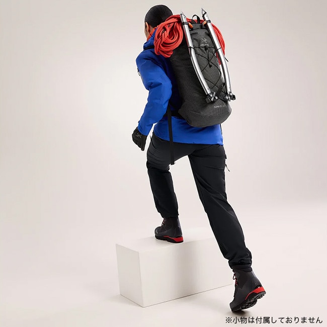 上部にロープを取り付けられるストラップ、アイスツールを持ち運ぶためのデュアルドッグボーンを備えました。