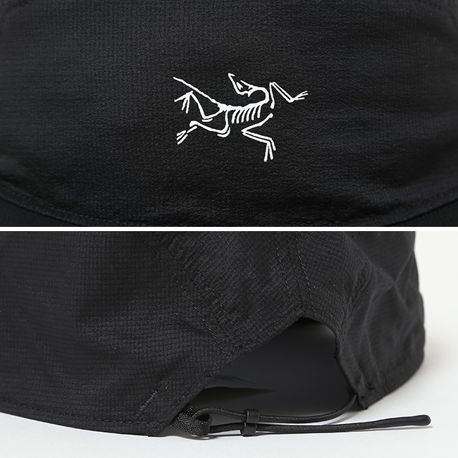 ストレッチナイロン素材は軽量で通気性に優れ、ショックコードアジャスターは素早く引っ張るだけで固定でき、つばのデザインにより最小限の重量で頭をカバーします。