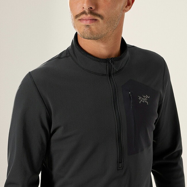 ジップネックと長めの襟は、状況に応じて通気性を高めたり、カバー力を高めたりと、様々な用途に対応します。