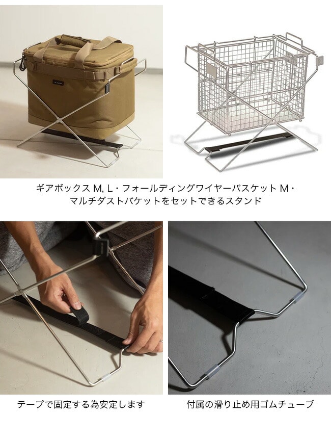 主にギアボックスM, L、フォールディングワイヤーバスケットM、マルチダストバケットを使用いただけます。素材をステンレススチールに変更することにより錆びにくい仕様へ。