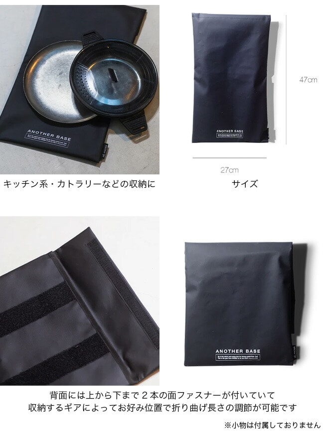 背面には上から下まで2本の面ファスナーが付いていて収納するギアによってお好み位置で折り曲げ長さ調節が可能です。