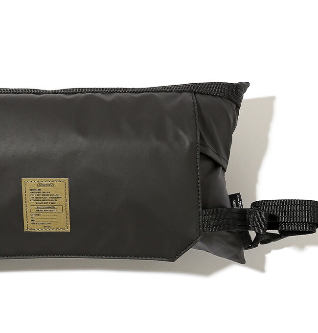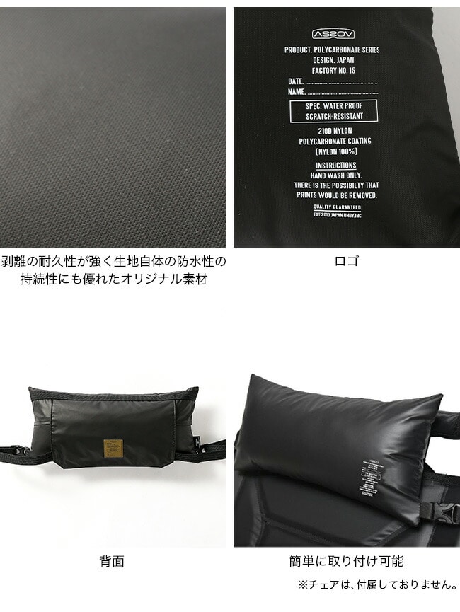 本体には、210Dナイロンにポリウレタンを4回、さらにポリカーボネートを2回重ねた特殊コーティング素材を採用。一般的なPUコーティングに比べて剥離しにくく、防水性の持続力にも優れたUNBYオリジナル生地で、雨や湿気から内部をしっかりガードします。