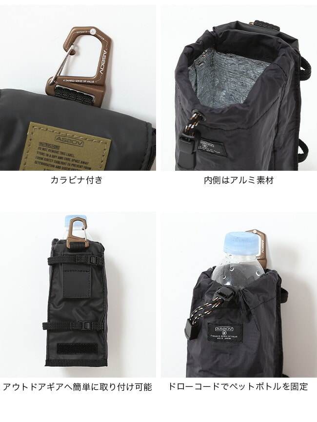 AS2OV アウトドアギアへ簡単に取り付けでき、 ポリカシリーズでカスタムできる拡張性の高さが魅力です。500mlペットボトルやタンブラーなど、 アウトドアで持ち歩きたいドリンク類をしっかりとホールド。