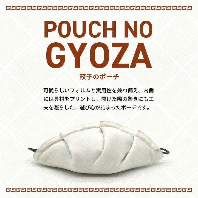 内側の具材まで忠実に再現された、可愛らしいフォルムの餃子ポーチ。