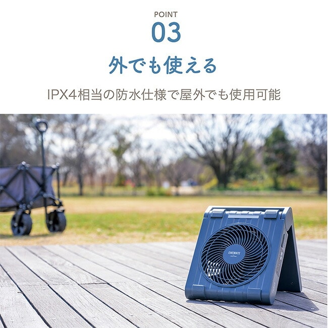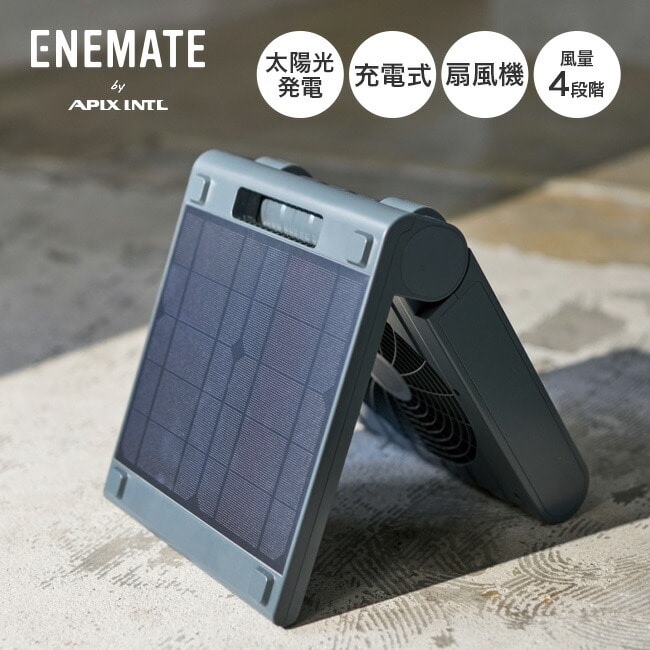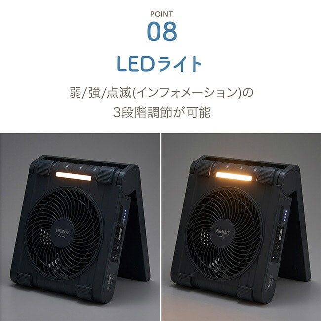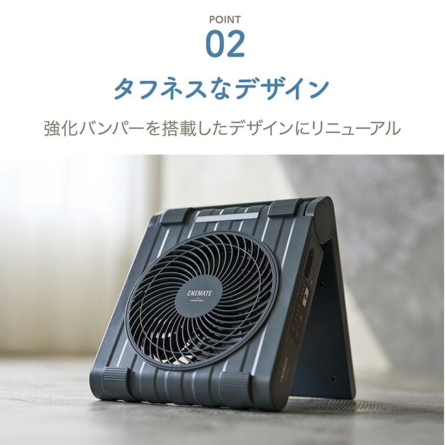 ソーラーパワーファンは、背面に搭載したソーラーパネルでみずから発電し運転します。ご好評をいただいた従来品にLEDライトが追加され、外観もタフネスなデザインへリニューアルしました。