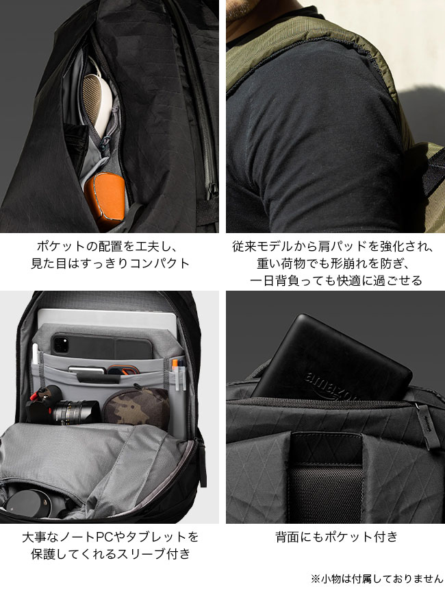 従来モデルの機能性はそのままに、収納力とクッション機能をグレードアップさせました。重い荷物やよりたくさんの物を持ち運びたい人におすすめです。