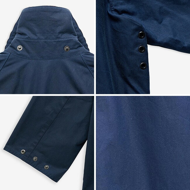 長すぎない絶妙な着丈のレングス、スナップボタン仕様のサイドベンツなど、ルーツである乗馬用ジャケットのディティールが、今ではデザインアクセントとして活かされています。