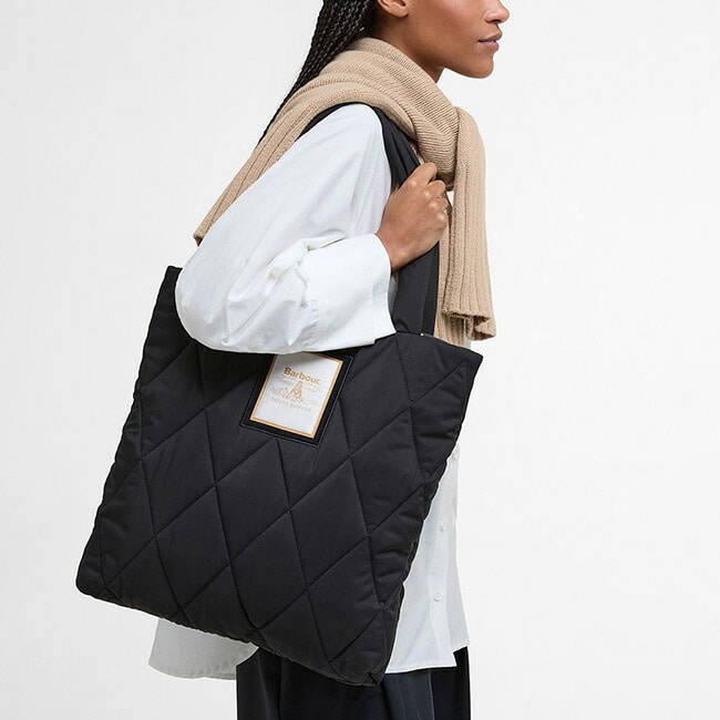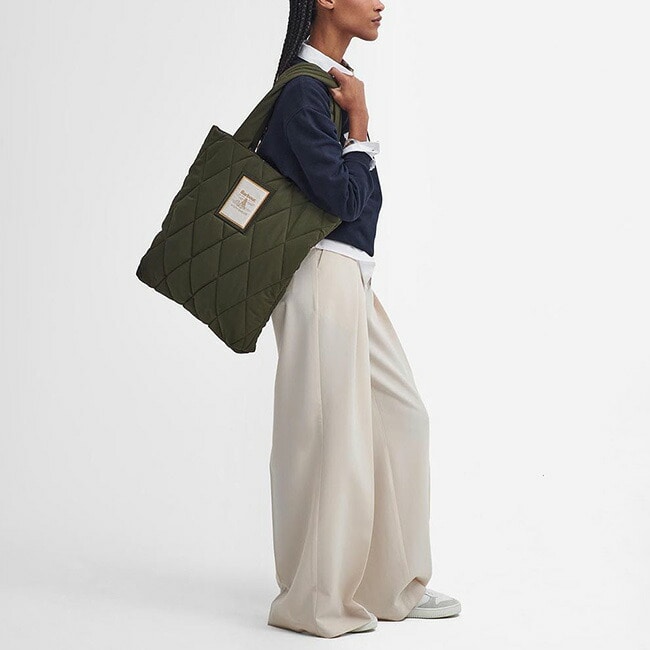 人気キルティングジャケットにインスパイアされた、エレガントかつ実用的なトートバッグ。