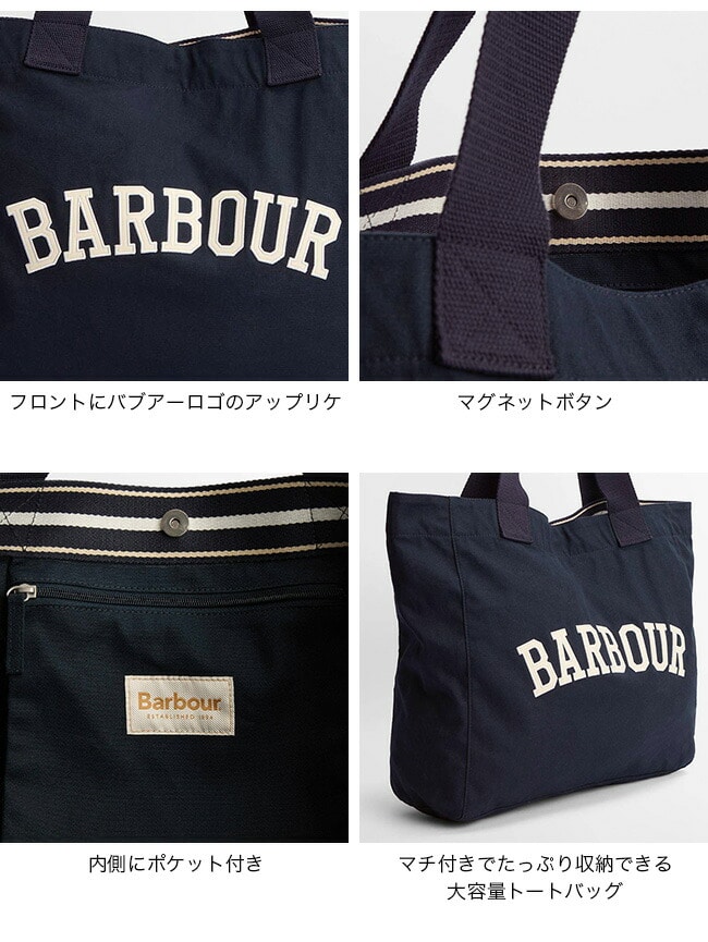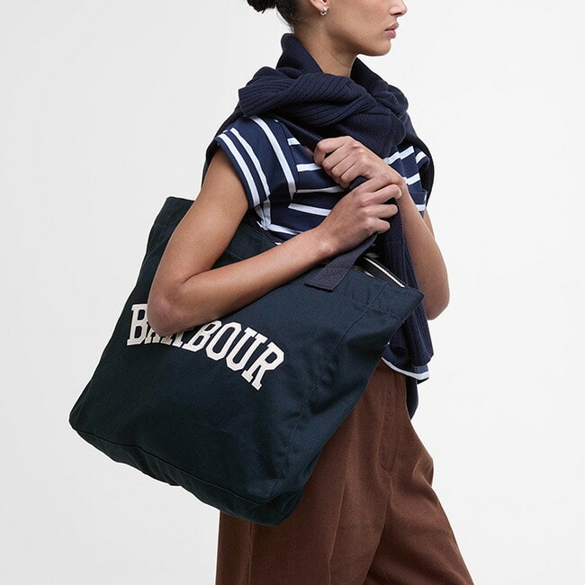 Barbourロゴが映える大容量トートバッグ